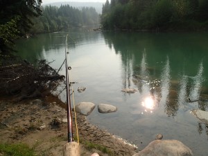 Au retour on tente notre chance à la pêche à la mouche dans le lac Medicine (vous vous demander pourquoi cette acharnement hein, nous aussi). Y a même pas de ménés on aurait dû allumer!