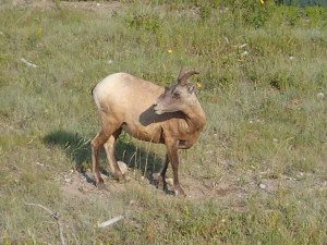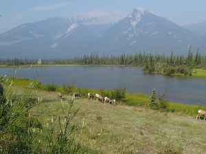 Au retour au campement Johanne est toute fière de nous montrer les animaux vue sur la route (j’en aurais fait autant) qu’ils ont emprunter lors de leurs balades: chèvres de montagnes et Wapitis. Tandis que nous rien et toujours pas de petit nounours. A part celui que j’ai entrevu sur la route « Icefield parkway » et que je pensais sur le coup avoir vu un sac a vidange noir jusqu’a ce qu’il bouge! 😲 On n’a pas pu arrêter car il y avait une garde du parc qui criait a tous de circuler justement pour ne pas causer d’accident, j’imagine!!!!