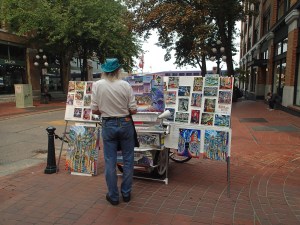 Puis grand saut: on entre dans Vancouver, wow grande métropole. Le port est gigantesque, quai pour les paquebots de containers, quai pour les trans Pacifique, quai pour les hydravions, ça n’en finis plus…..on finis par trouver un stationnement, pas évident dans le centre ville et surtout avec la van. On utilise une autre application de la ville pour payer et nous voilà partis. Recherche de l’horloge à vapeur (en réalité elle est maintenant complètement électrique!!) qui sonne à toutes les 15min. Après quelques minutes de recherches la voilà et voici ce qu’elle nous fait entendre »….