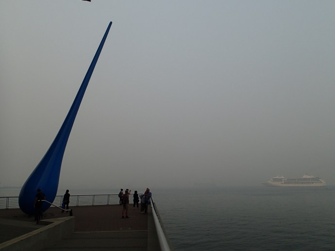 5:40 debout, nuit pas très bonne pour Nath (aucune raison spécifique), départ pour le traversier dans 15 min.. embarquement sans problème. Petit dej à bord et dehors (pied marin de Nath oblige!!!encore beaucoup de brume donc difficile de voir au loin. La mer est très calme et la traversée sera en douceur (au grand plaisir de Nath☺️). On descend à Horse Shoe bay, environ 20 minutes de Vancouver.