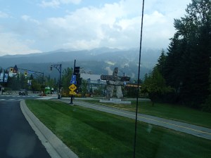Bon on n’as pas vu le temps passé et les gardiens nous cherchent avant de fermer la guérite….juste à temps (on doit pas être les premiers à oublié l’heure!!). Sur le chemin du retour on voit un endroit (stationnement de piste de ski alpin) qui semble permettre au VR de passer la nuit, mais on se dit que ce serait bien d’aller voir Whistler et trouver quelque chose dans le coin. Dans le pire des cas on reviendra si on ne trouve rien. Arrêt à l’info dans le centre de Whistler pour voir les possibilités de campement, humm, rien et pas de Boonedocking permis nulle part. La ville ressemble un peu à Mont-Tremblant chez nous….On se rabat sur un camping privé à quelques KM, pas de chance, eux aussi sont plein. Ils nous donnent une liste de camping des environs.