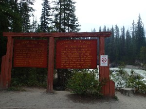 Donc on décide de continuer vers le Parc National de Yoho qui est supposé aussi être un autre joyau selon le Lonely. Un attrait touristique est indiqué sur le chemin: natural bridge (non indiqué dans mon livre!). On décide d’y aller. Wow l’eau c’est creusé un chemin à travers la roche laissant la possibilité de passé sur le dessus en passant sur le mur de roche…mais d’ici quelques temps (???), une partie s’effondrera pour laisser place à une gorge profonde. Une chance qu’on c’est arrêté!