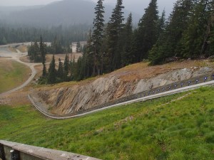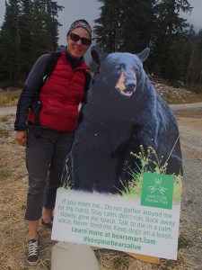 Bon on n’as pas vu le temps passé et les gardiens nous cherchent avant de fermer la guérite….juste à temps (on doit pas être les premiers à oublié l’heure!!). Sur le chemin du retour on voit un endroit (stationnement de piste de ski alpin) qui semble permettre au VR de passer la nuit, mais on se dit que ce serait bien d’aller voir Whistler et trouver quelque chose dans le coin. Dans le pire des cas on reviendra si on ne trouve rien. Arrêt à l’info dans le centre de Whistler pour voir les possibilités de campement, humm, rien et pas de Boonedocking permis nulle part. La ville ressemble un peu à Mont-Tremblant chez nous….On se rabat sur un camping privé à quelques KM, pas de chance, eux aussi sont plein. Ils nous donnent une liste de camping des environs.