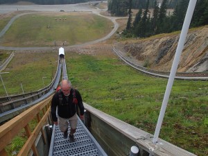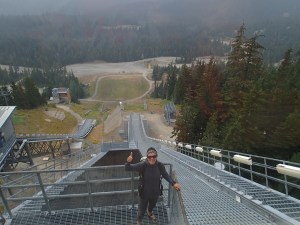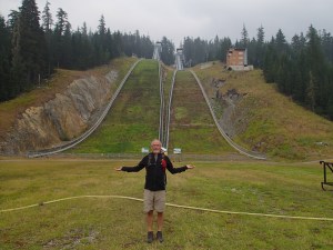Sur la route on fait une escale aux installations olympiques de 2010, plus particulièrement les rampes de saut à ski!!! (Avec les 500++++marches pour accéder à la tour des juges). Avant de monter la rampe on se fait un petit lunch histoire de se donner un peu d’énergie. L’ascension se passe quand même très bien, avec en plus les deux petits sentiers d’étape pour se rendre au sommet ça fait une balade très agréable en plus de se donner une vue vertigineuse de la haut. C’est certain on ne verra jamais plus cette discipline Olympique de la même façon. C’est vraiment de la Haute voltige!!!