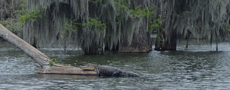 Ensuite direction Martinville et le Lac St-Martin pour faire un « swamp tour ». Avec « Champagne’s swamp tour ». $60 pour nous deux pour env 1h15. On pensait que c’était une attrape touriste…qu’il allait nourrir les alligators pour qu’on les voient ….mais non. À FAIRE ABSOLUMENT. C’était extraordinaire, un endroit zen comme ça se peut pas! Il y a toute une faune là bas! Notre guide nous a autant parlé des arbres et leurs mousses ( qui agit comme insecticide- bravo la nature), des oiseaux et bien sur des alligators. Et c’était très paisible, le bateau ne faisait presque aucun bruit. C’est sûr qu’en kayak cet endroit aurait été majestueux mais nous avions des épaules à dorloter de notre marathon d’hier! Et nous aurions pas eu de guide pour commenter! I-N-I-M-A-G-i-N-A-B-L-E