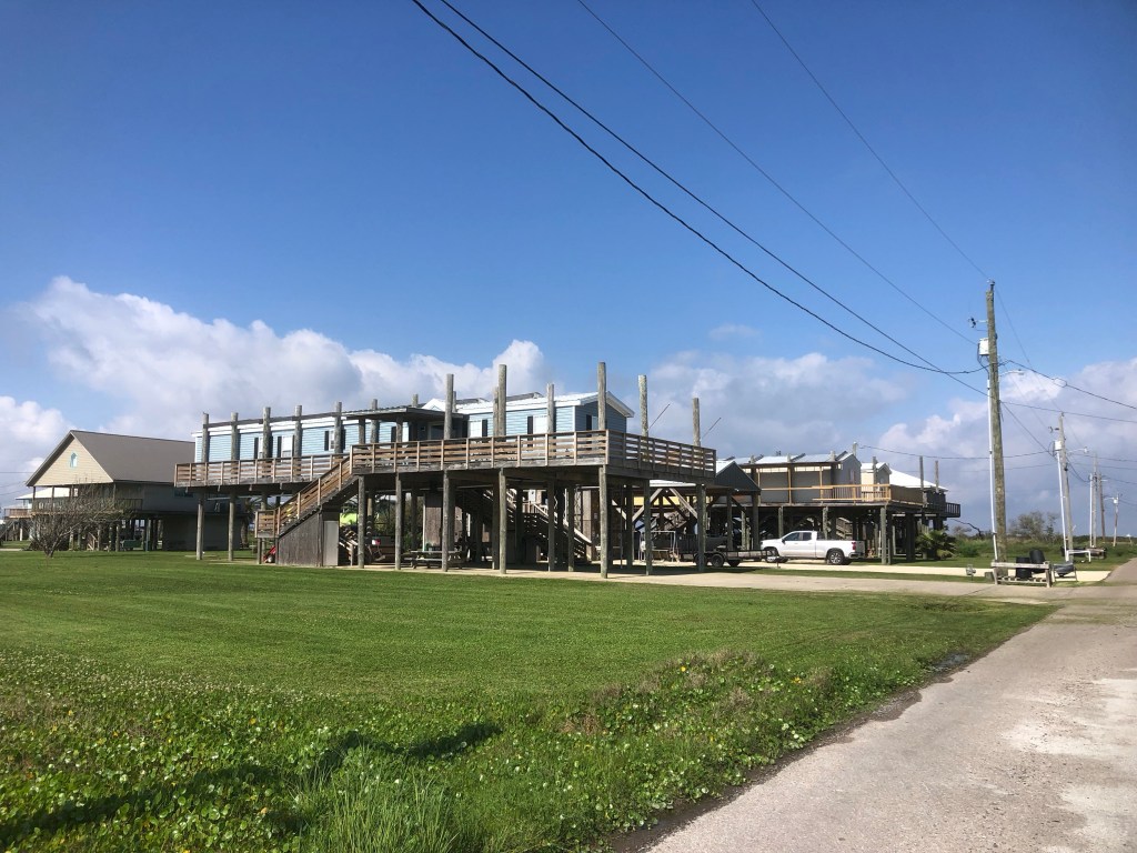 La dame du RV nous explique que la vie est dure depuis les ouragans qui ont frappés. Maintenant ils ne sont que 350 habitants au lieu de 2,000 et l’été lors de la saison pas mal toutes les maisons vides sont loués. Mais mettons que c’est dur de faire vivre les restos pendant la saison morte. Ici la nouvelle loi oblige les maisons à être sur pilotis à plus 15 pieds de ht maintenant. Pis on a en a vu plein avec système d’ascenseur.