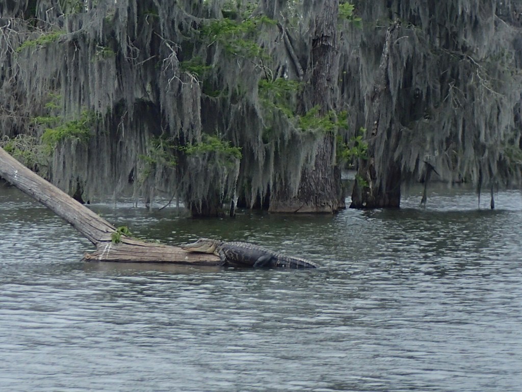 Ensuite direction Martinville et le Lac St-Martin pour faire un « swamp tour ». Avec « Champagne’s swamp tour ». $60 pour nous deux pour env 1h15. On pensait que c’était une attrape touriste…qu’il allait nourrir les alligators pour qu’on les voient ….mais non. À FAIRE ABSOLUMENT. C’était extraordinaire, un endroit zen comme ça se peut pas! Il y a toute une faune là bas! Notre guide nous a autant parlé des arbres et leurs mousses ( qui agit comme insecticide- bravo la nature), des oiseaux et bien sur des alligators. Et c’était très paisible, le bateau ne faisait presque aucun bruit. C’est sûr qu’en kayak cet endroit aurait été majestueux mais nous avions des épaules à dorloter de notre marathon d’hier! Et nous aurions pas eu de guide pour commenter! I-N-I-M-A-G-i-N-A-B-L-E