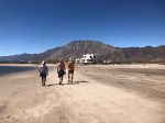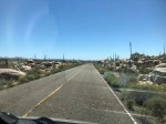 En chemin l’environnement vient de changer de façon drastique. Nous sommes rendu dans un climat aride, rocailleux et venteux également. On aperçoit des cactus (on dirait une multitude de tappettes de bolo!!!