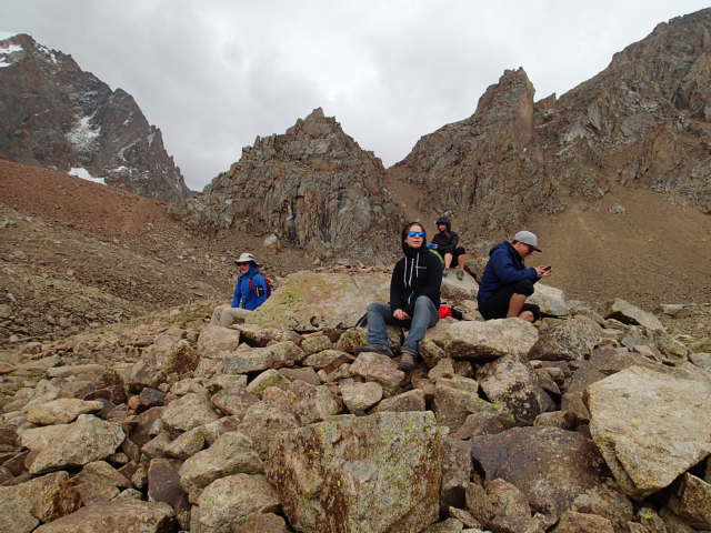 Aujourd’hui debout tôt car on part faire une randonné au sommet des montagnes, objectif mettre les pieds dans la neige☃️. Donc même transport qu’hier mais cette fois ci on sera assis confortablement dans le bus et direction du premier téléférique et ensuite les 2 autres. Puis on y est, la balade commence sur un sentier très rocailleux et sur des montées plutôt abruptes. Le temps est clair et on peut voir les glaciers de l’autre côté de la vallée, vraiment pittoresque. On continu notre ascension mais le temps semble vouloir se couvrir, on aperçoit au loin les nuages s’engouffrés entre les montagnes comme si ils étaient poussés dans un tunnel. Puis ce sera au tour de la crête de la montagne de nous envoyer des nuages, ça y est on est entourés!! Quel spectacle ahurissant de