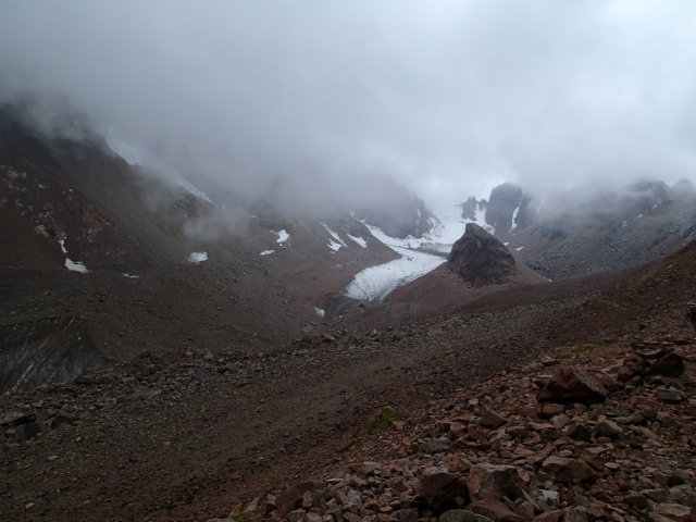 voir le décor changer si rapidement sous nos yeux!!! Puis viennent quelques flocons de grêle, ne sachant pas trop si cela va empirer Annie nous trouve un abri sous un petit promontoire. Nous allons en profiter pour casser la croûte tout en espérant que le temps se dégage car il commence à faire froid. On pousse un peu plus loin notre randonnée mais il fait de plus en plus froid et on voit de moins en moins car on est dans les nuages. On décide donc de rebrousser chemin, bonne décision car on peine à s’orienter et trouver la piste tellement le brouillard est dense par endroit, mais tout se termine très bien car nous allons tous pouvoir se mettre les pieds sur un minuscule bout de glacier, donc mission accomplie! Tout en marchant dans les roches on peut entendre une rivière souterraine qui passe sous nos pieds, c’est magique!!! On commence à voir la station du téléférique au loin, yéé! On perd pas de temps et hop dans la gondole pour la descente jusqu’au niveau des terrasses restaurants. Puis resto au chaud cette fois et repos avant de revenir à l’hôtel où on n’est pas trop empilé dans le bus.