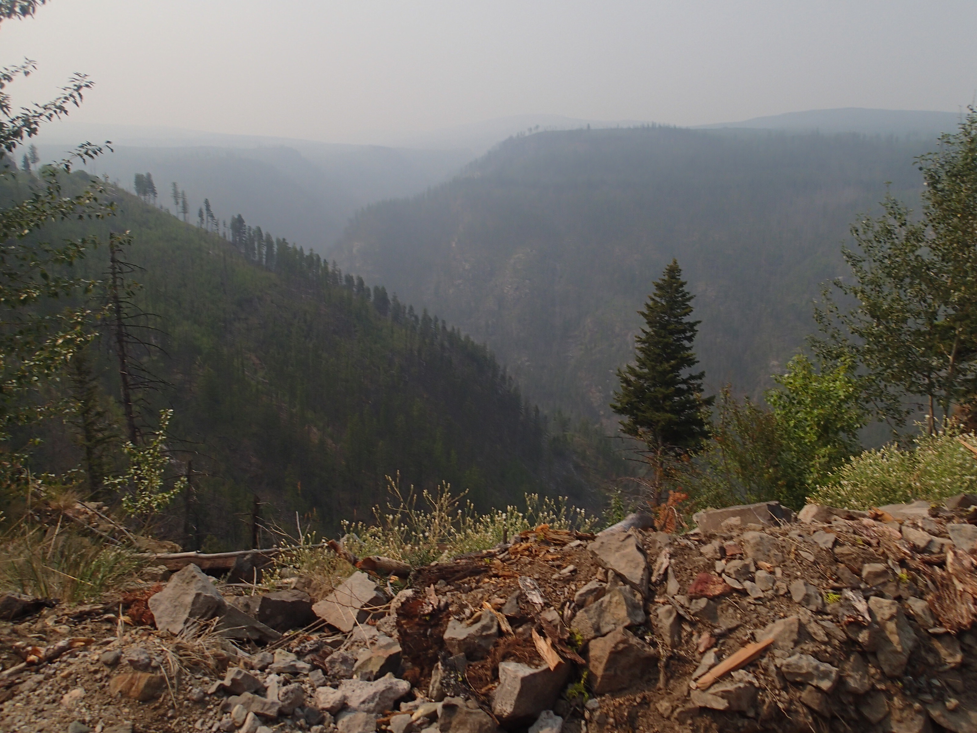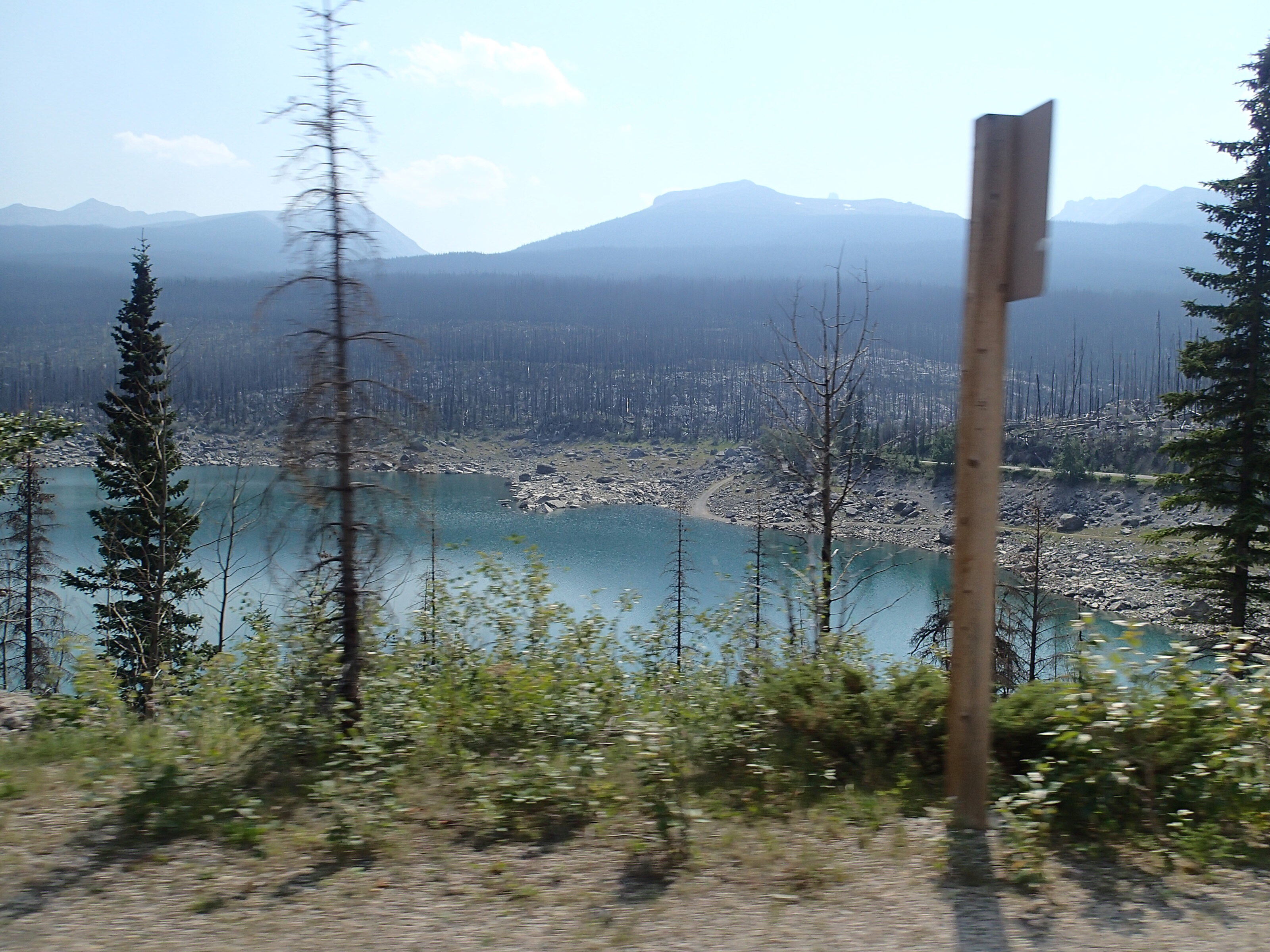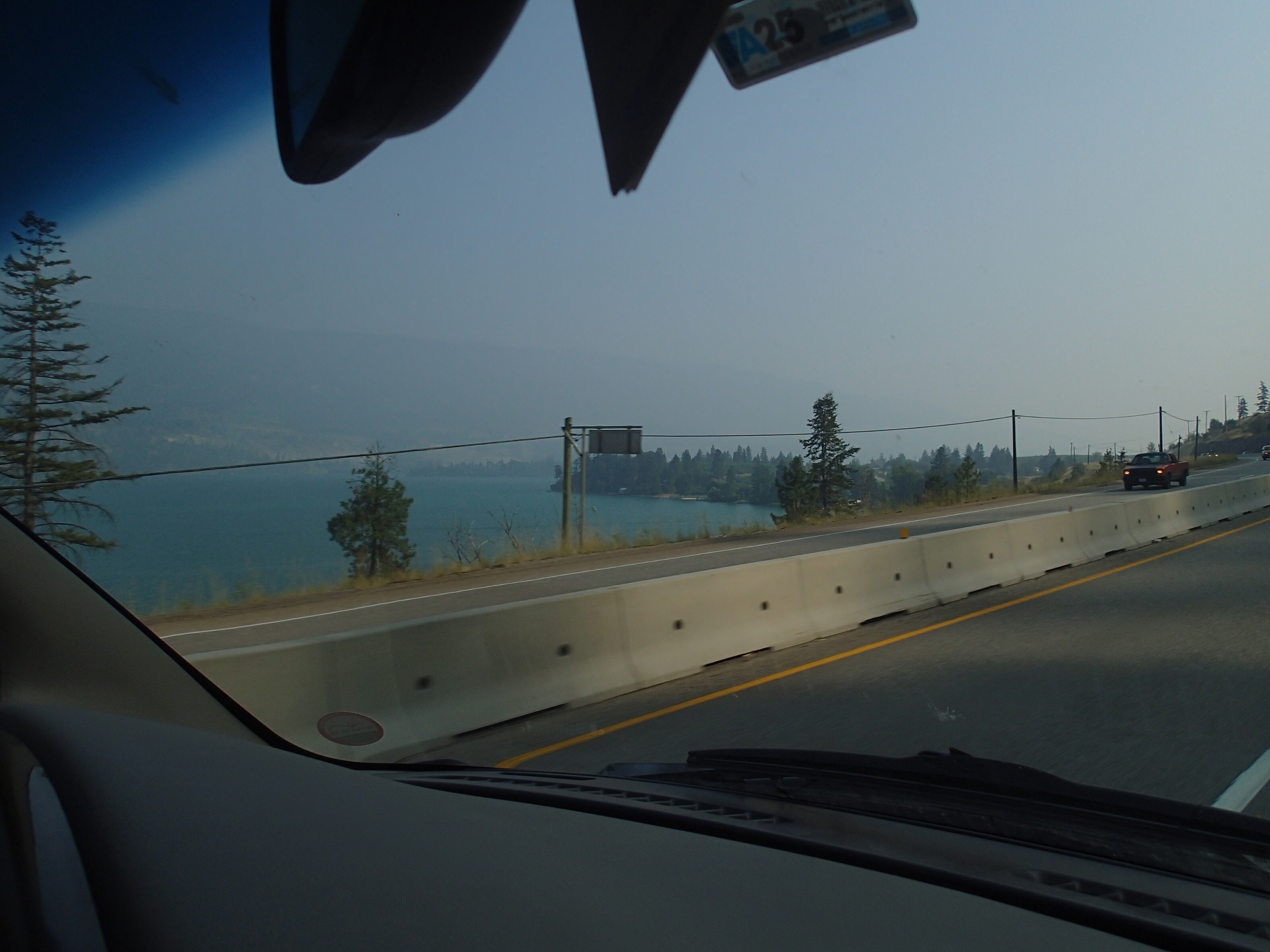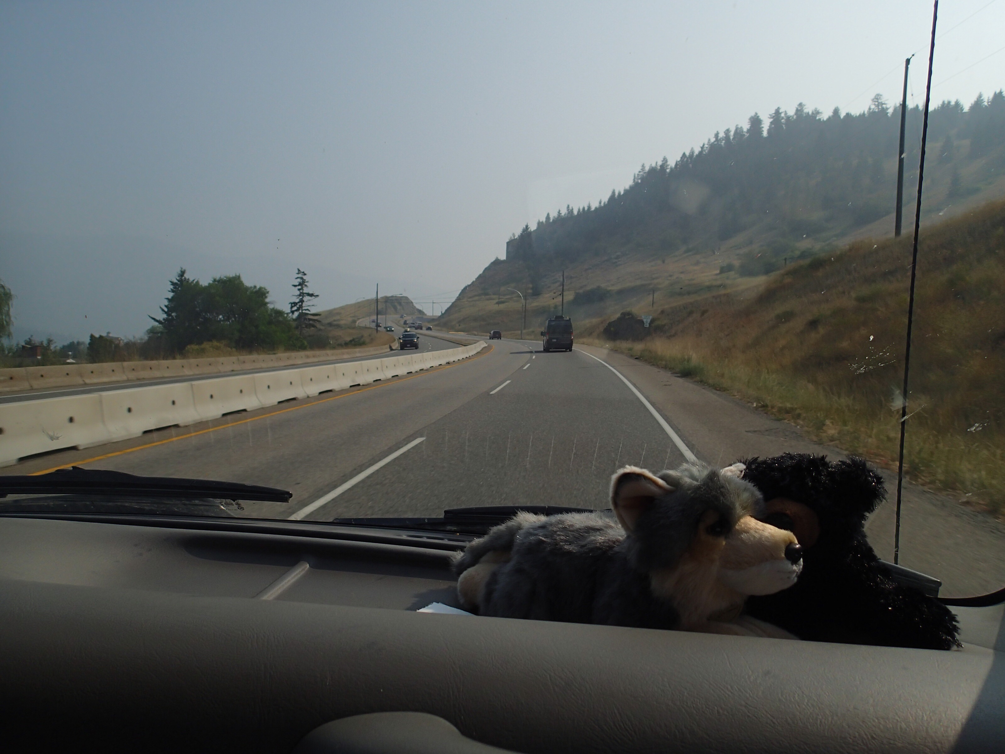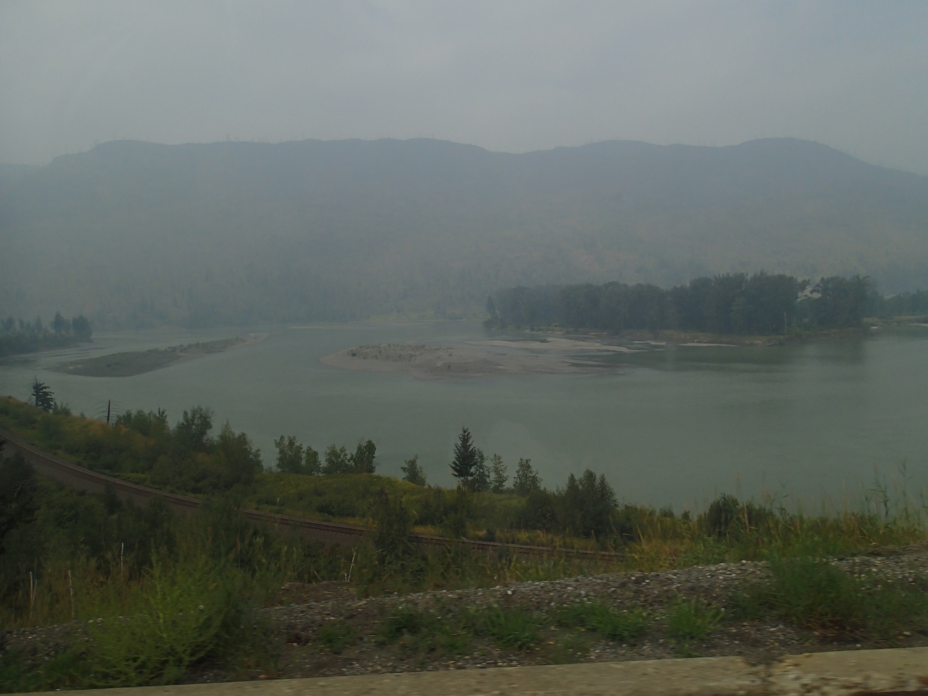 Dormis popir exception des trains qui ont passé pendant la nuit. On se fait notre café, on déjeune puis on décolle en direction du fameux « Parc National des Glaciers », où il y est répertorié pas moins de 430 Glaciers (le paradis) 🙃. On sait que ce sera beaucoup de route mais faut ce qu’il faut. En chemin en refaisant l’itinéraire 2-3h semble s’avoir ajouter! 😲. Ha!, il nous font faire un méchant détour car la « route 1, la transcanadienne, est fermée pour collision avant Revelstoke et pas sûr de s’y rendre non plus car beaucoup de feux de forêt, cela dépendra des vents. Donc arrêt à l’info centre de Pemberton: pas de routes fermées pour les feux car les vents ont changés de bord 🙂 mais l’accident, on ne sait pas combien de temps il fermeront😕! Étant à 6h de route de là, on verra bien en chemin, on pense qu’on devrait être Ok! C’est repartis, encore une fois la route panoramique est de toute beauté, dommage pour la fumée qui nous empêche de voir au loin.