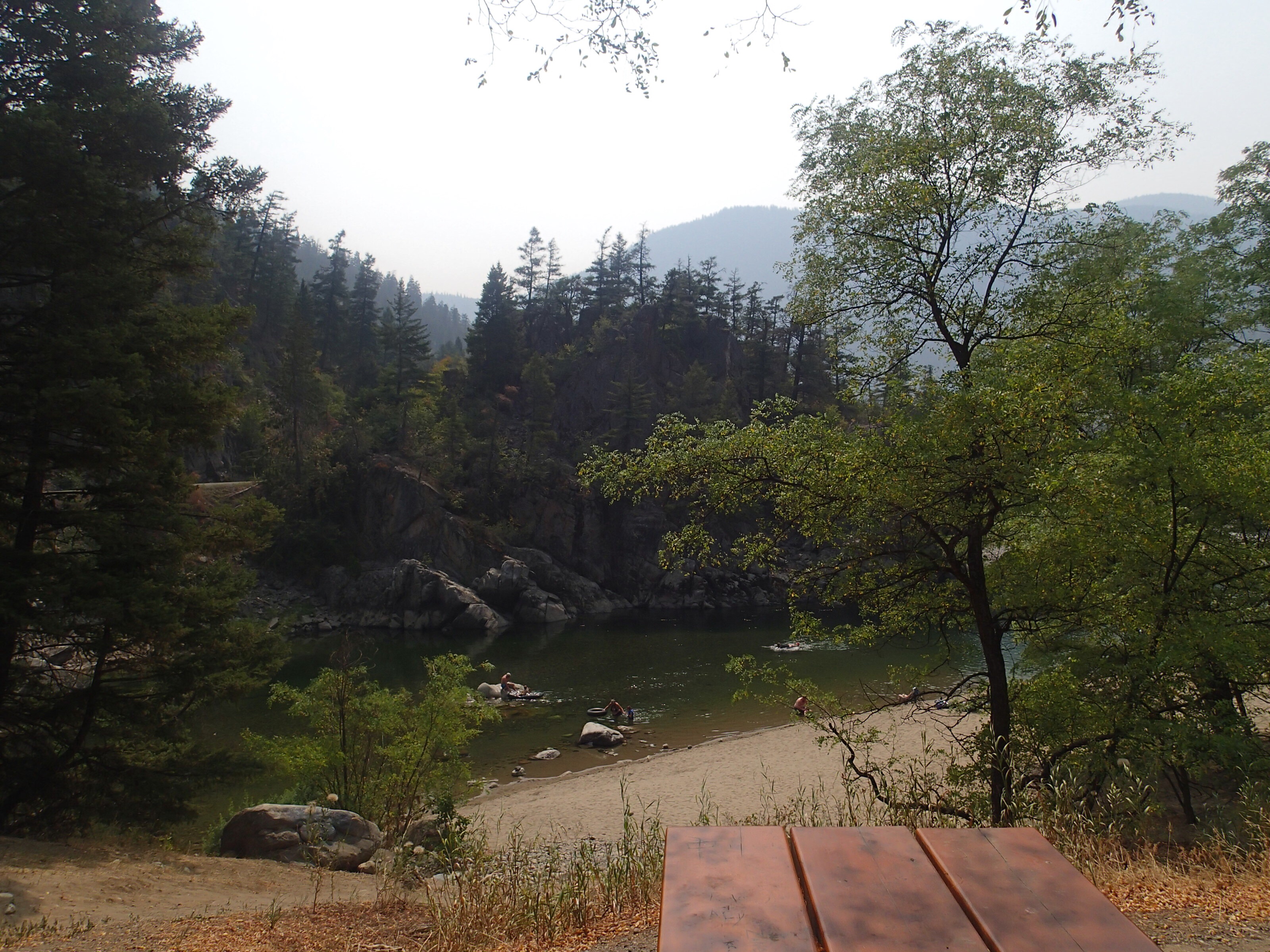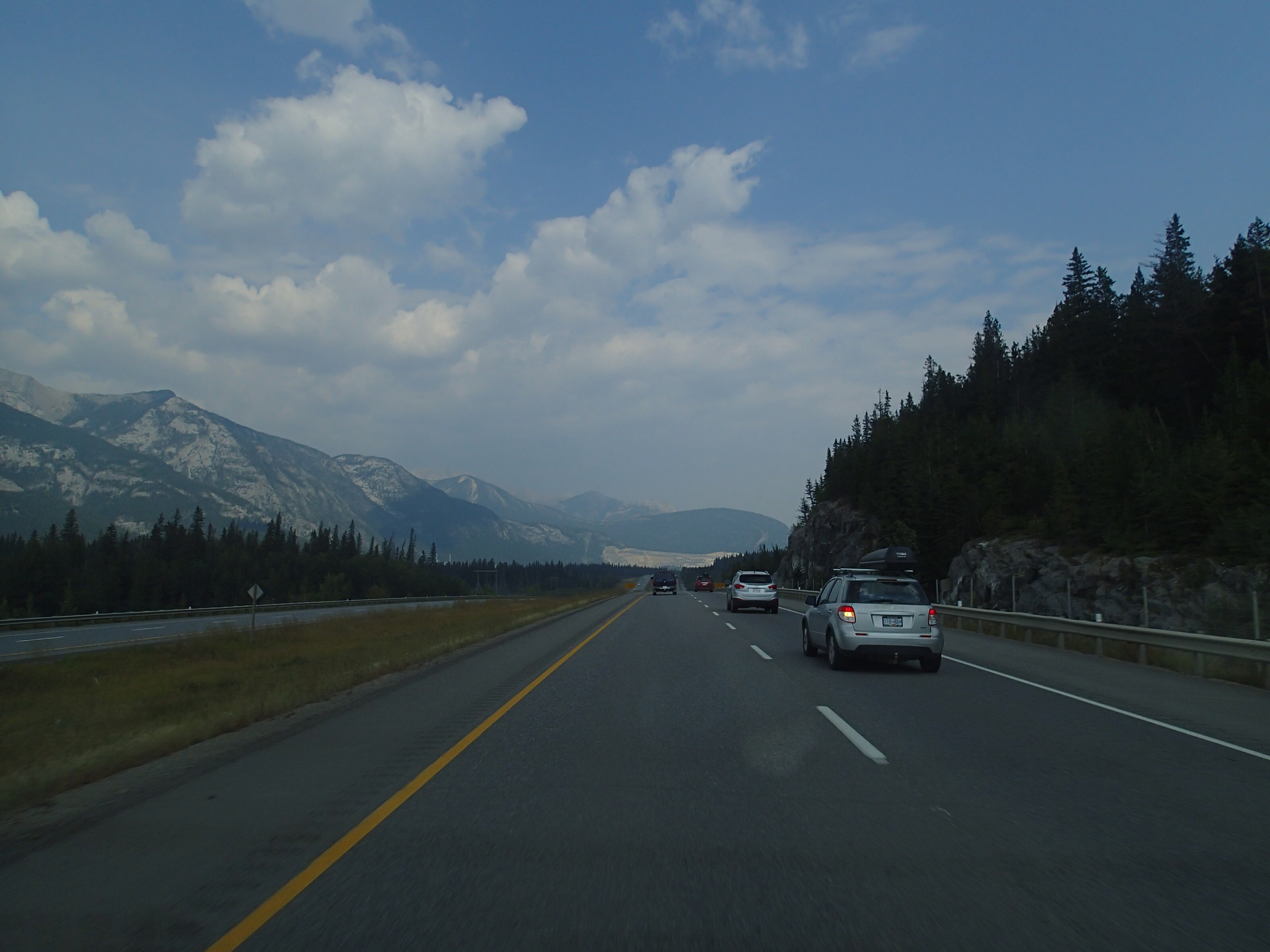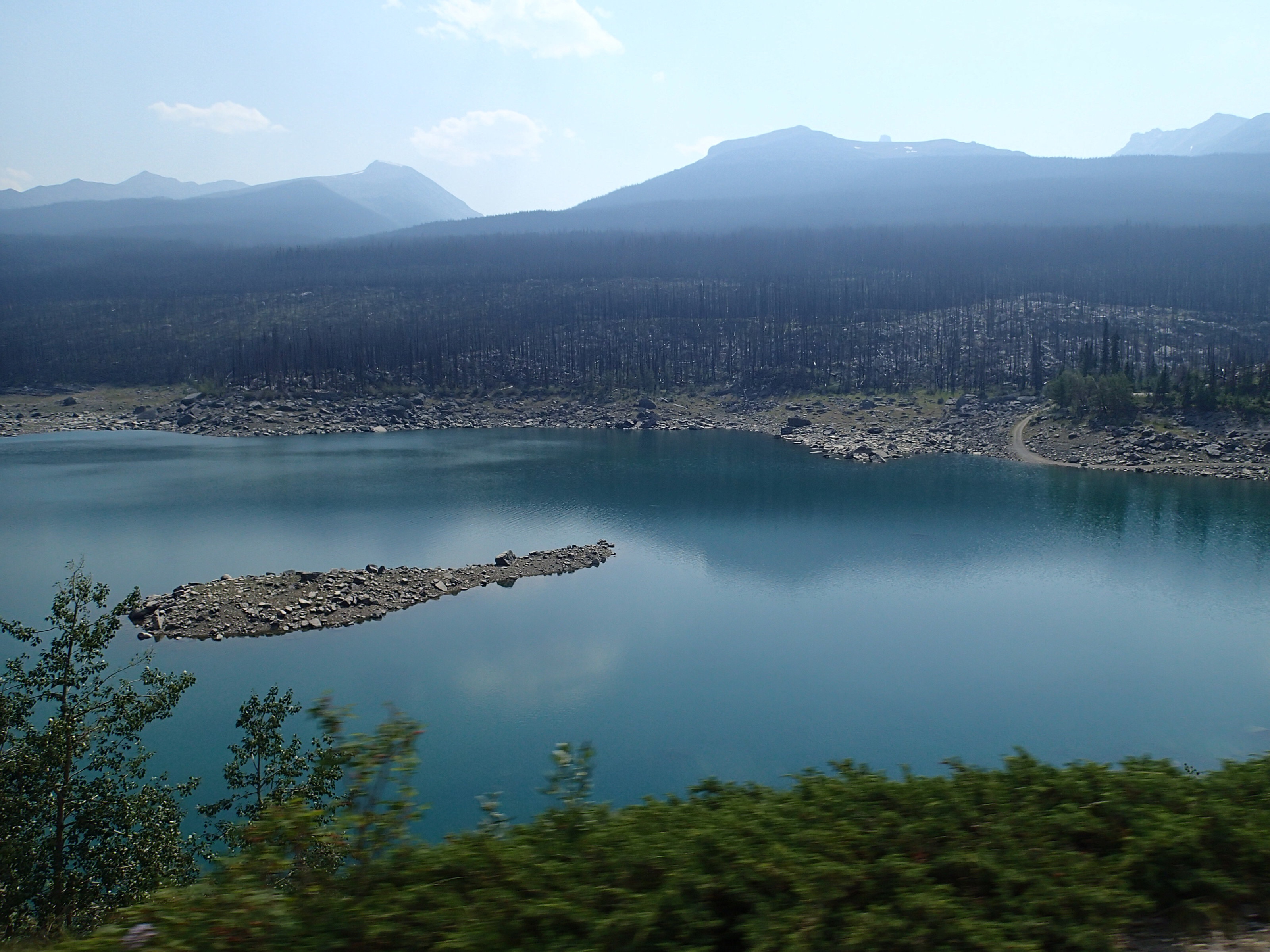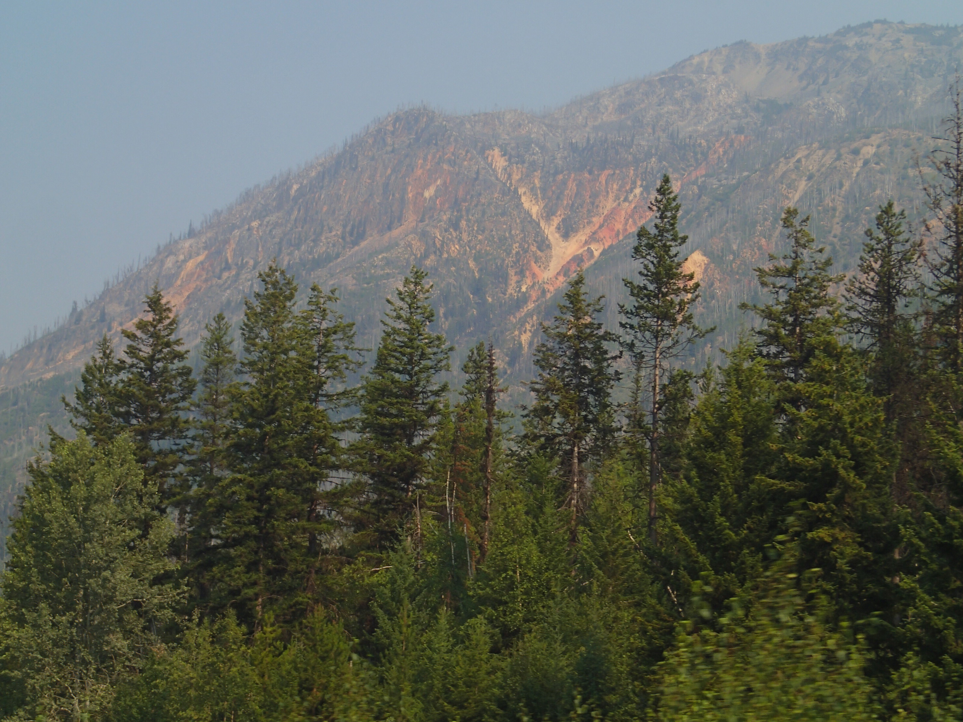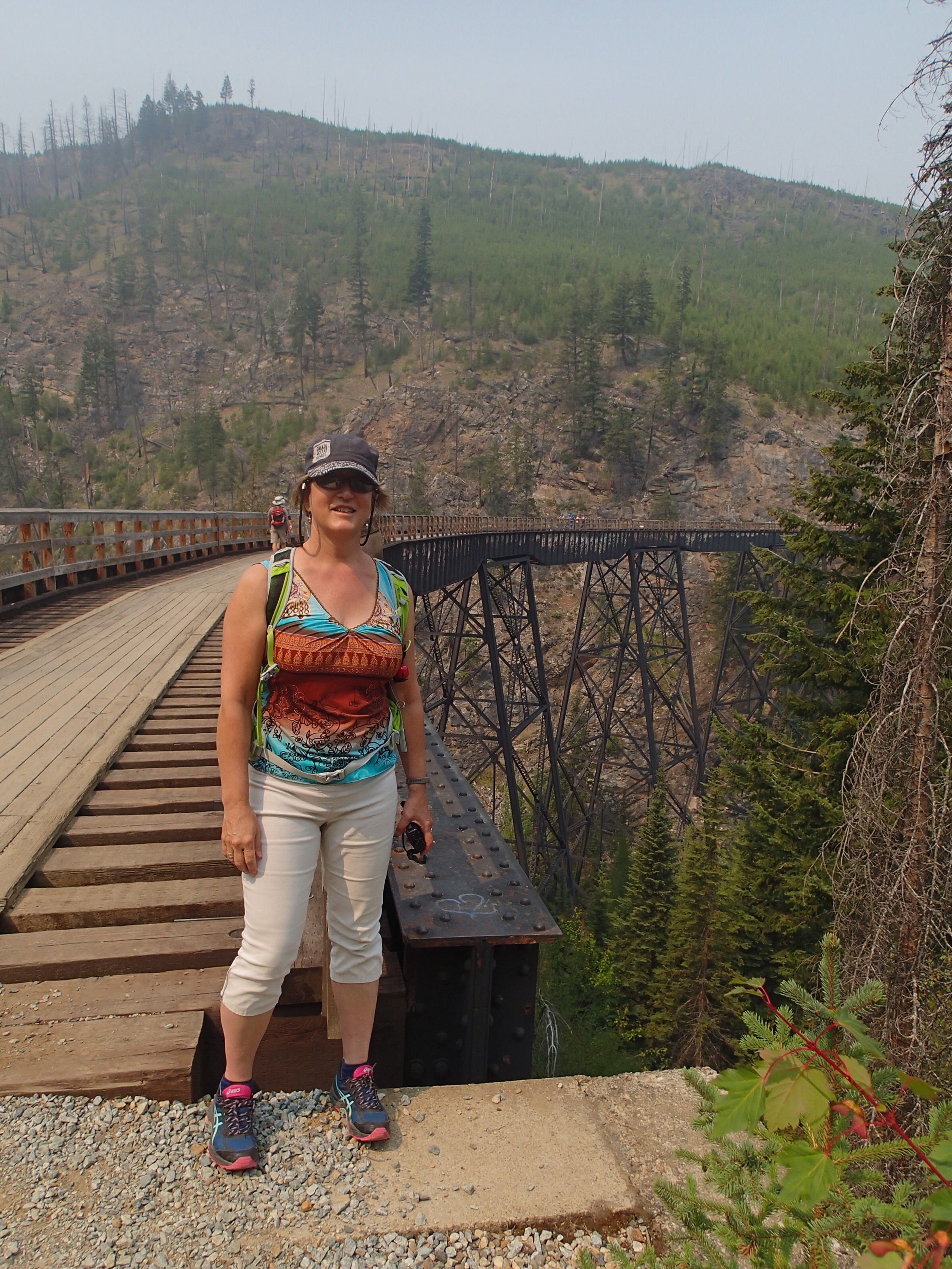 Dormis popir exception des trains qui ont passé pendant la nuit. On se fait notre café, on déjeune puis on décolle en direction du fameux « Parc National des Glaciers », où il y est répertorié pas moins de 430 Glaciers (le paradis) 🙃. On sait que ce sera beaucoup de route mais faut ce qu’il faut. En chemin en refaisant l’itinéraire 2-3h semble s’avoir ajouter! 😲. Ha!, il nous font faire un méchant détour car la « route 1, la transcanadienne, est fermée pour collision avant Revelstoke et pas sûr de s’y rendre non plus car beaucoup de feux de forêt, cela dépendra des vents. Donc arrêt à l’info centre de Pemberton: pas de routes fermées pour les feux car les vents ont changés de bord 🙂 mais l’accident, on ne sait pas combien de temps il fermeront😕! Étant à 6h de route de là, on verra bien en chemin, on pense qu’on devrait être Ok! C’est repartis, encore une fois la route panoramique est de toute beauté, dommage pour la fumée qui nous empêche de voir au loin.