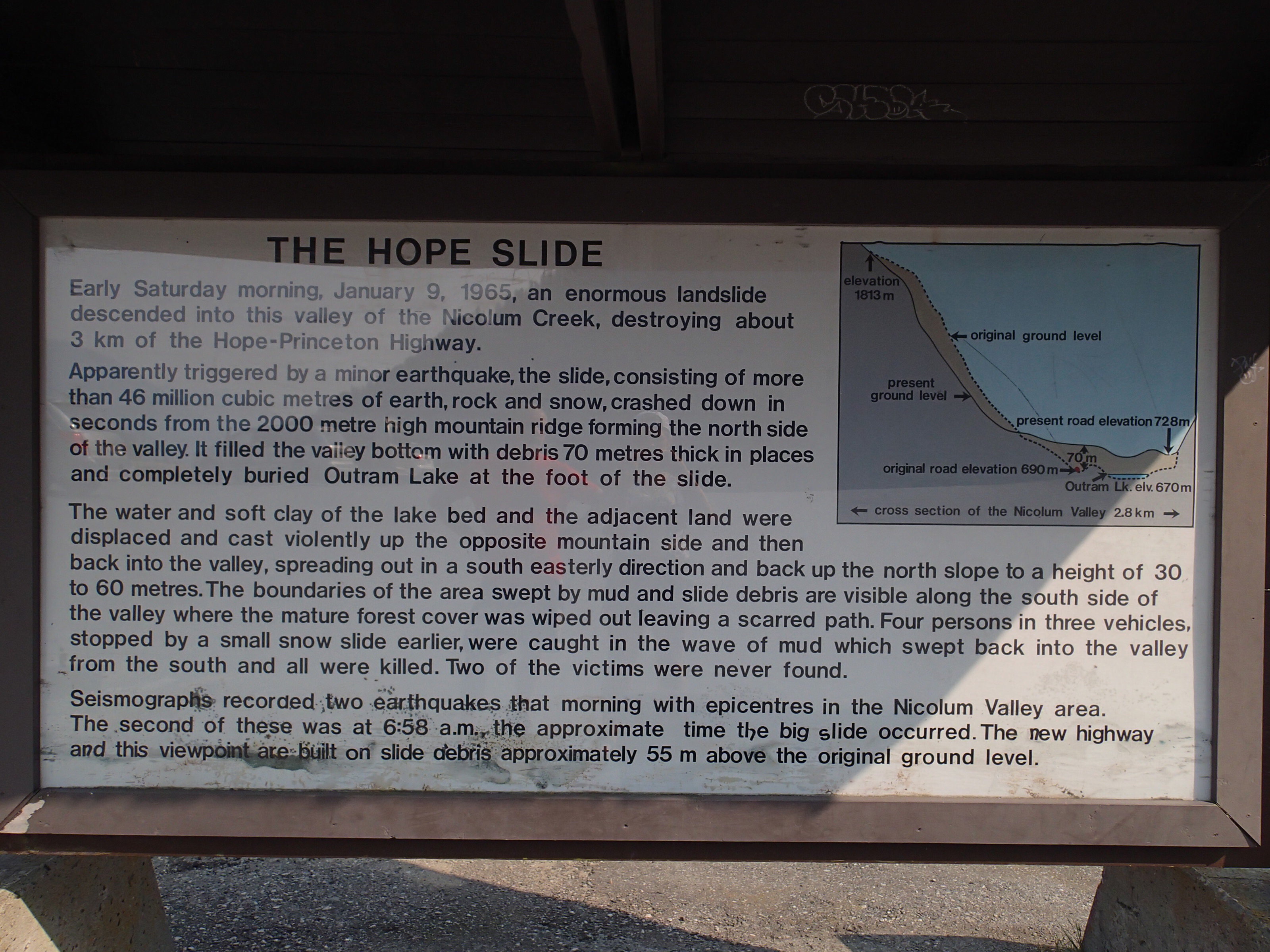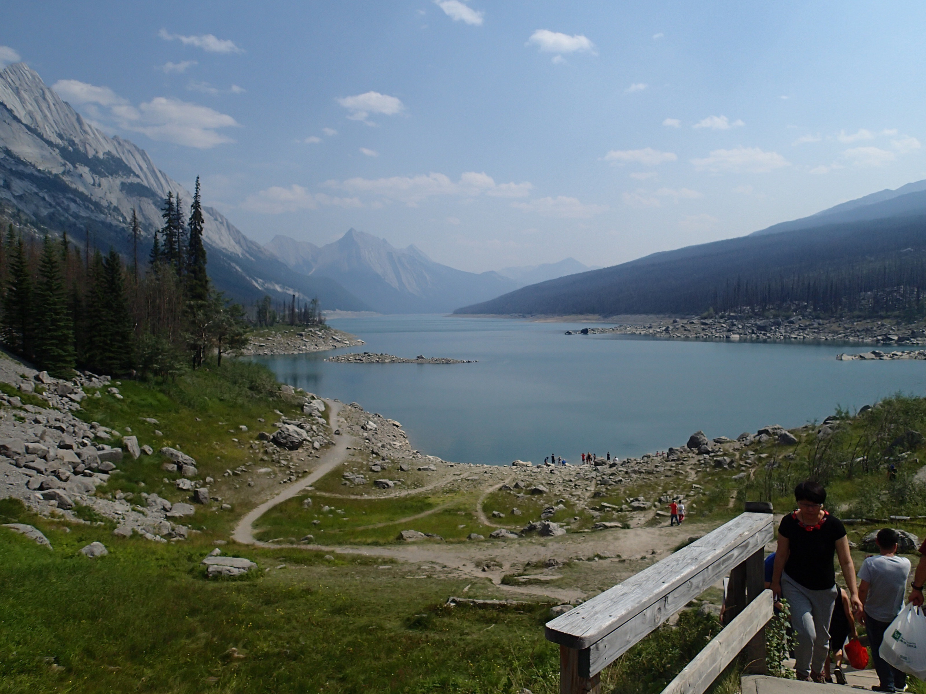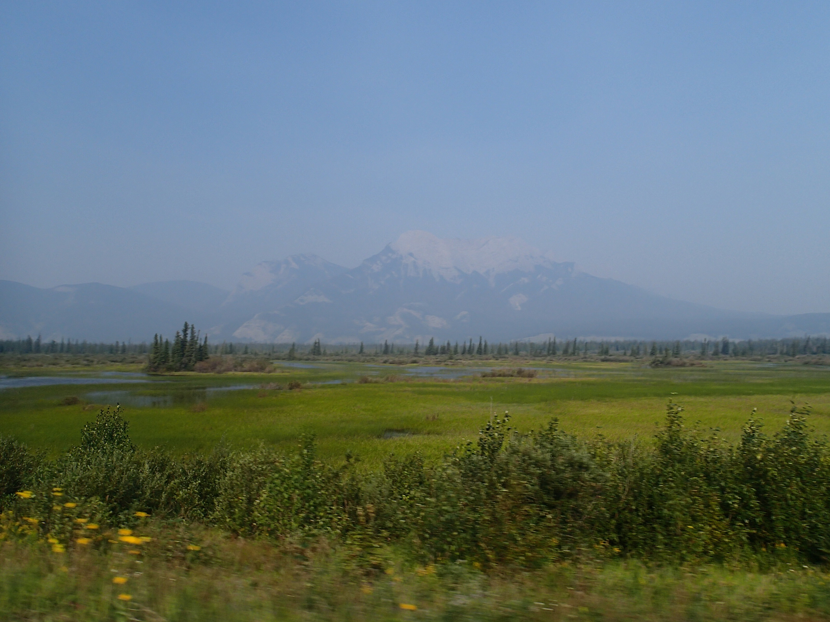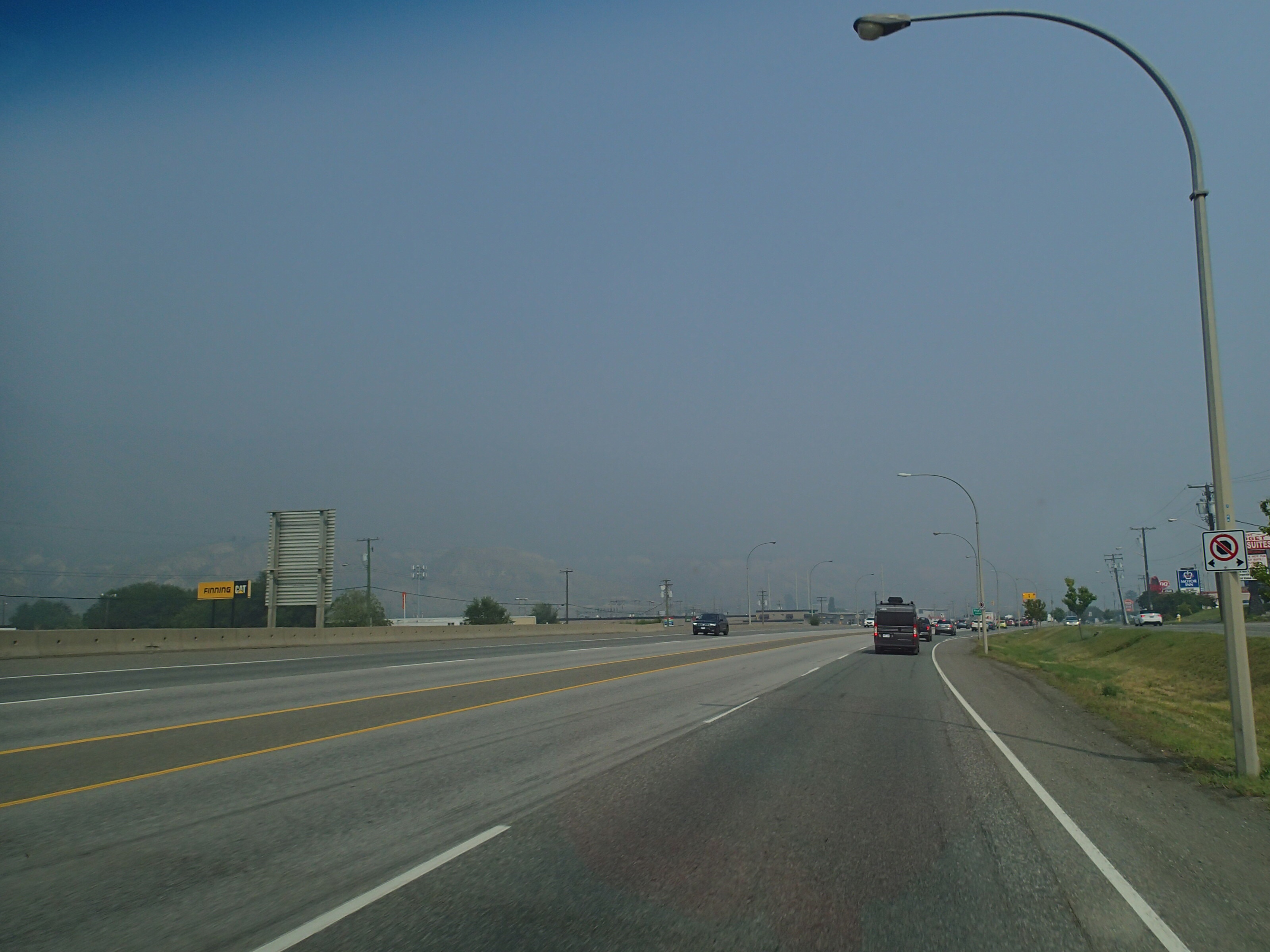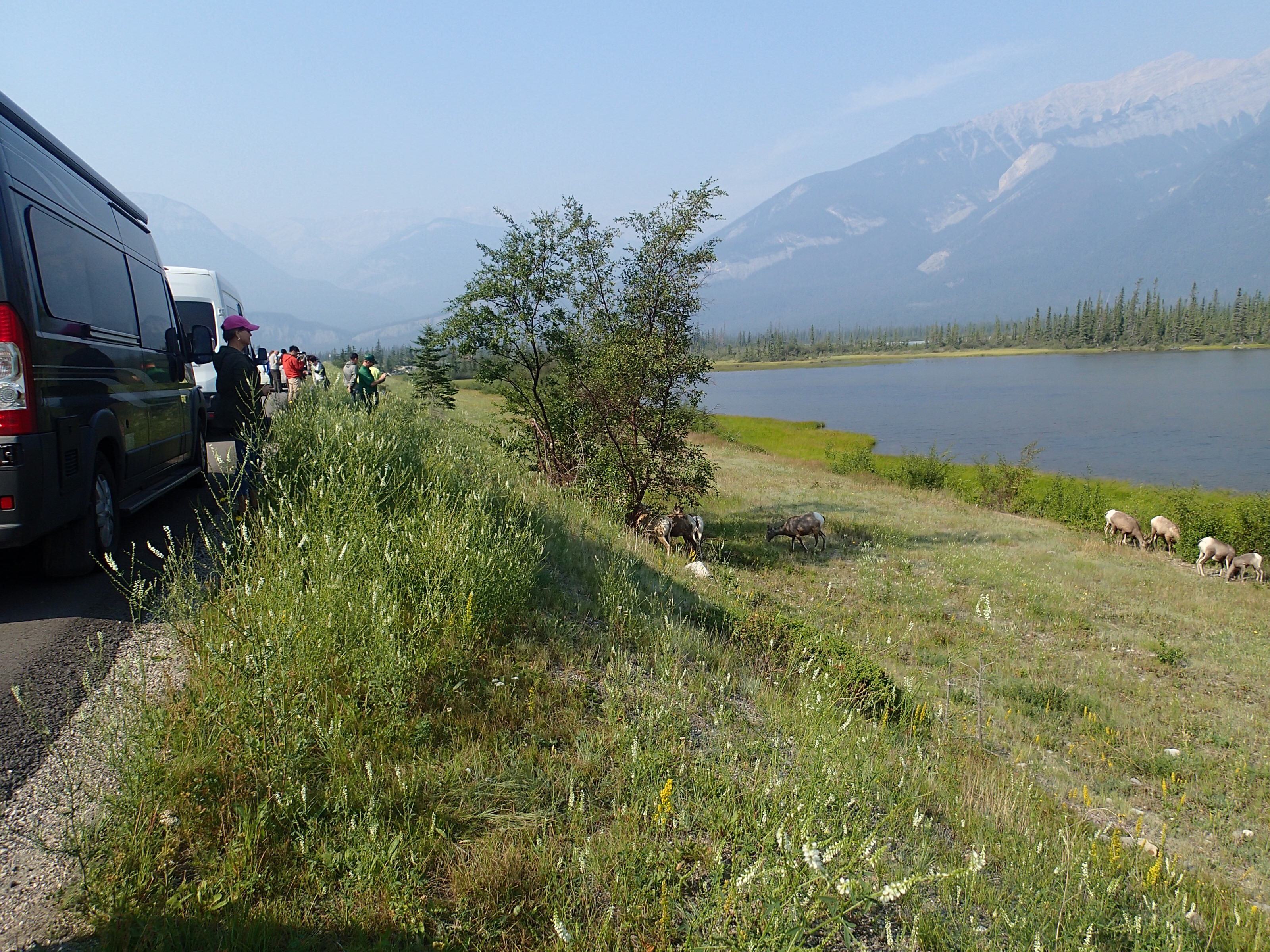Dormis popir exception des trains qui ont passé pendant la nuit. On se fait notre café, on déjeune puis on décolle en direction du fameux « Parc National des Glaciers », où il y est répertorié pas moins de 430 Glaciers (le paradis) 🙃. On sait que ce sera beaucoup de route mais faut ce qu’il faut. En chemin en refaisant l’itinéraire 2-3h semble s’avoir ajouter! 😲. Ha!, il nous font faire un méchant détour car la « route 1, la transcanadienne, est fermée pour collision avant Revelstoke et pas sûr de s’y rendre non plus car beaucoup de feux de forêt, cela dépendra des vents. Donc arrêt à l’info centre de Pemberton: pas de routes fermées pour les feux car les vents ont changés de bord 🙂 mais l’accident, on ne sait pas combien de temps il fermeront😕! Étant à 6h de route de là, on verra bien en chemin, on pense qu’on devrait être Ok! C’est repartis, encore une fois la route panoramique est de toute beauté, dommage pour la fumée qui nous empêche de voir au loin.