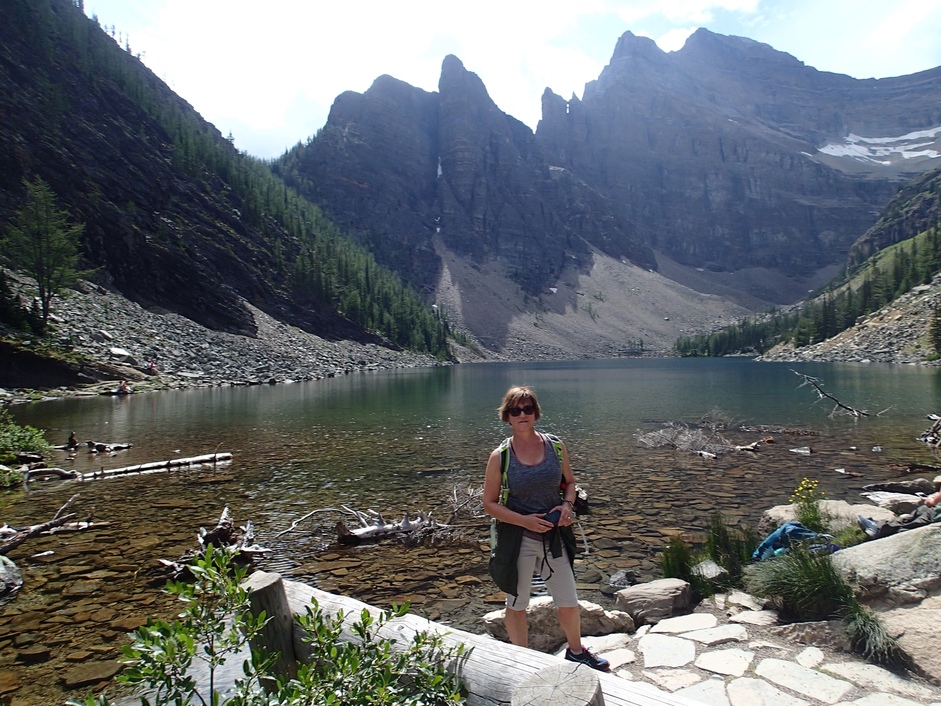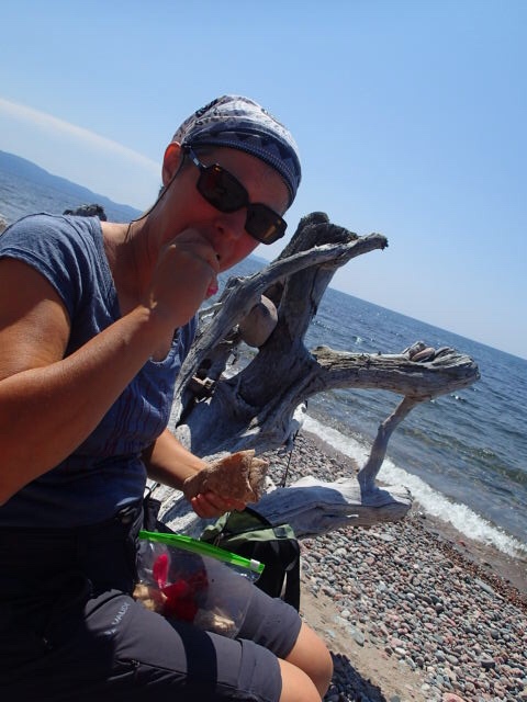 Superbe marche avec une température très agréable. On pense même avoir vue des trace de pattes d’ours!! Bon je n’ai pas arrêter de dire que je voulais en voir… mais pas trop prêt quand même ! Ho qu’on est content de revenir(20.5km en tout de marche) et de prendre ça relaxe sur le bord de l’eau en plus de s’y baigner! On passera quelque heures a relaxer un peu fatigués face au soleil de fin de journée. Et puis??? Festin de côtelette d’agneau. Hum que c’était bon avec en plus petite patates grelots aux 🍋.