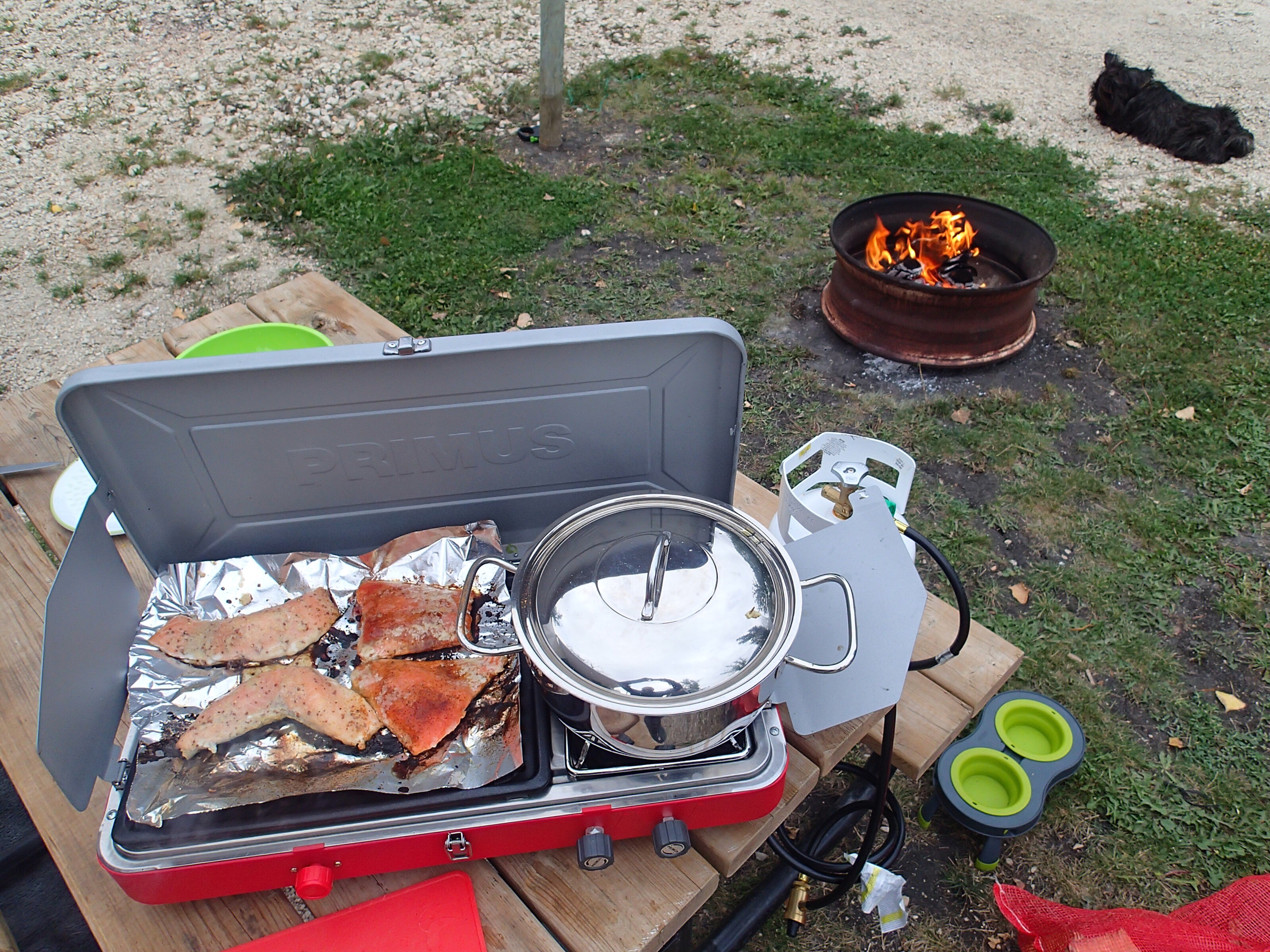 Bon une foi le petit vagabond rattrapé on s’installe et deviner quoi pour souper ? Euh non, pas gastronomique cette fois: Hot dog 🌭