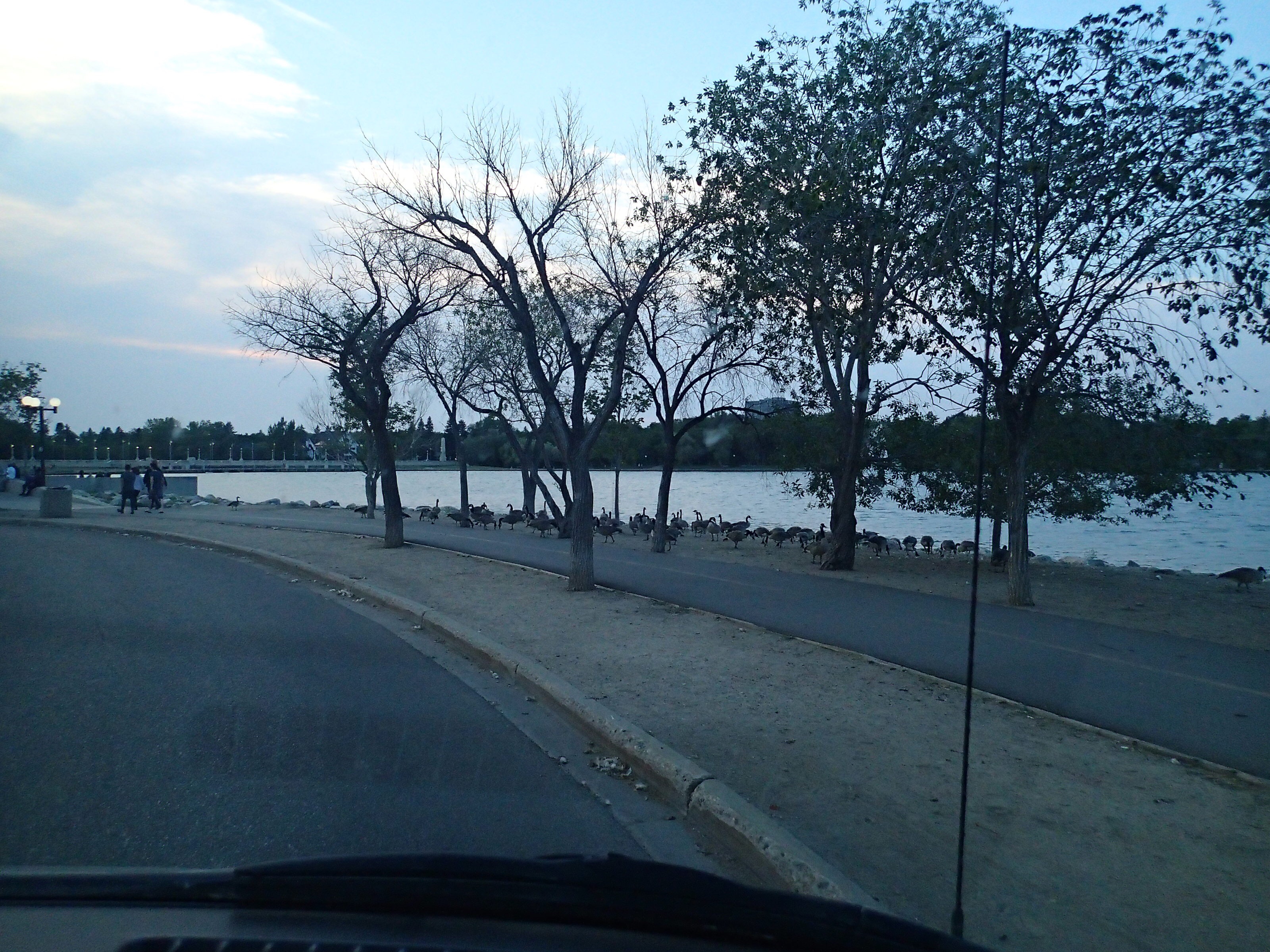 Arrivés à Thunder Bay c’est le déluge, on se dirige vers un Canadian Tire, LCBO et une épicerie puis on cherche un endroit ou on fera nos délinquant pour une nuit. Avec l’application iOverlander je déniche un endroit situé dans une descente de bateau public. Sur le chemin on voit une autre van comme nous sur le bord d’un canal, a retenir si ça ne convient pas. Finalement ça semble bien et mis a part des outardes, personnes. Oh oh Claude a oublie de tenir scotch et lui n’a qu’une idée en tête: la liberté et a moi les Outardes! Ha Ha quel beau film. Mais malheureusement aucune image de ceci..ou presque.