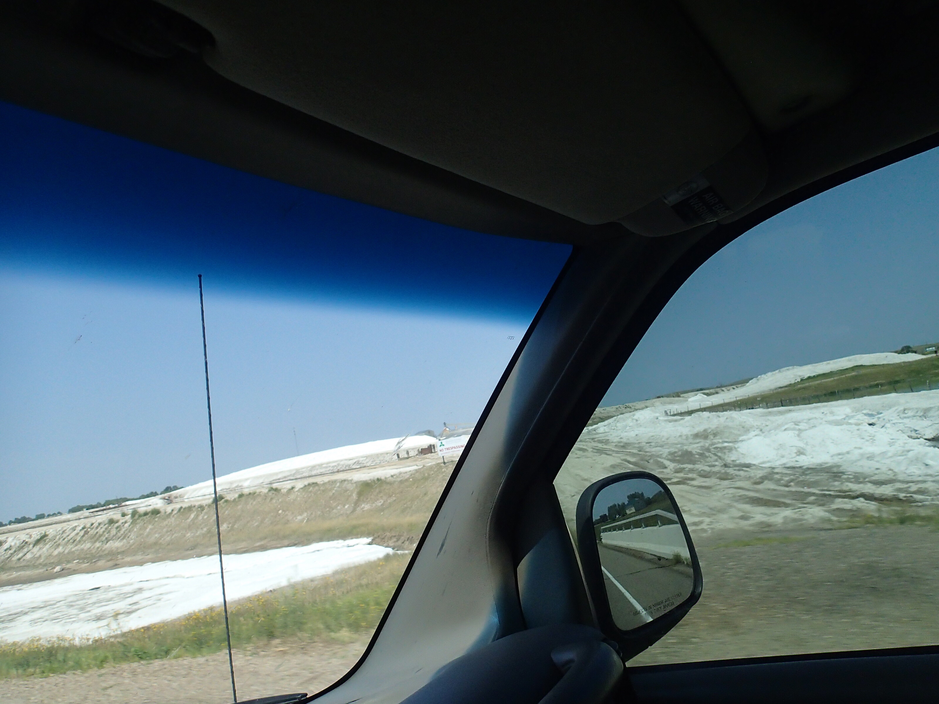 Bon pour ce qui est du chemin différent, oui c’est vrai c’est une autre route… mais c’est pas mal pareil quand on ne fait que de l’autoroute, i-e: des plaines. Par contre dans un des états, Le Dakota du Nord limite la vitesse à 70 m/h ( 113 km/h) ça c’était pas mal. Donc nous avons fait en moyenne 850 km /jour pour le retour avec plus ou moins 10h de route en plus de l’heure que nous devions ajouter en traversant 2 fuseaux horaires. Puis il a plut pas mal tous les jours par la suite et fait froid….mais nous ne sommes pas du tout a plaindre puisque durant notre périple nous n’avons presque eu aucune pluie et beaucoup de chaleur!