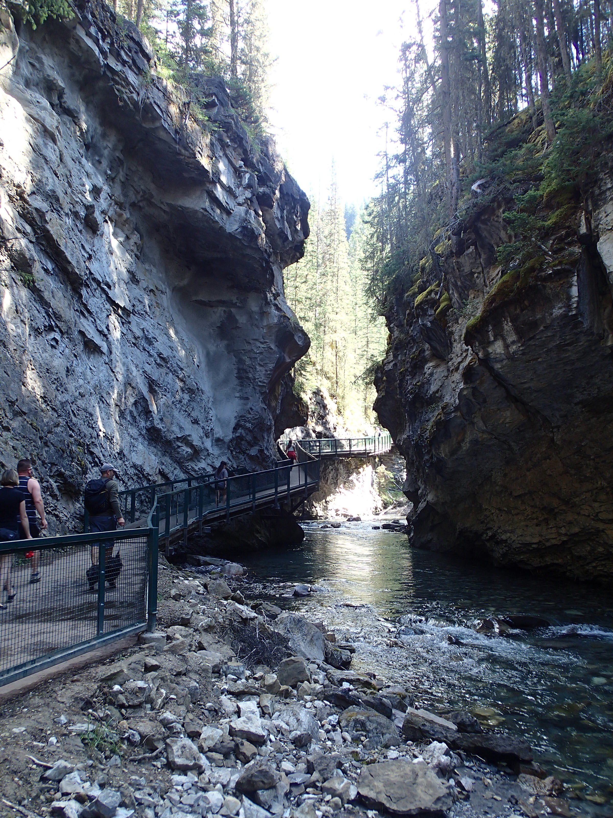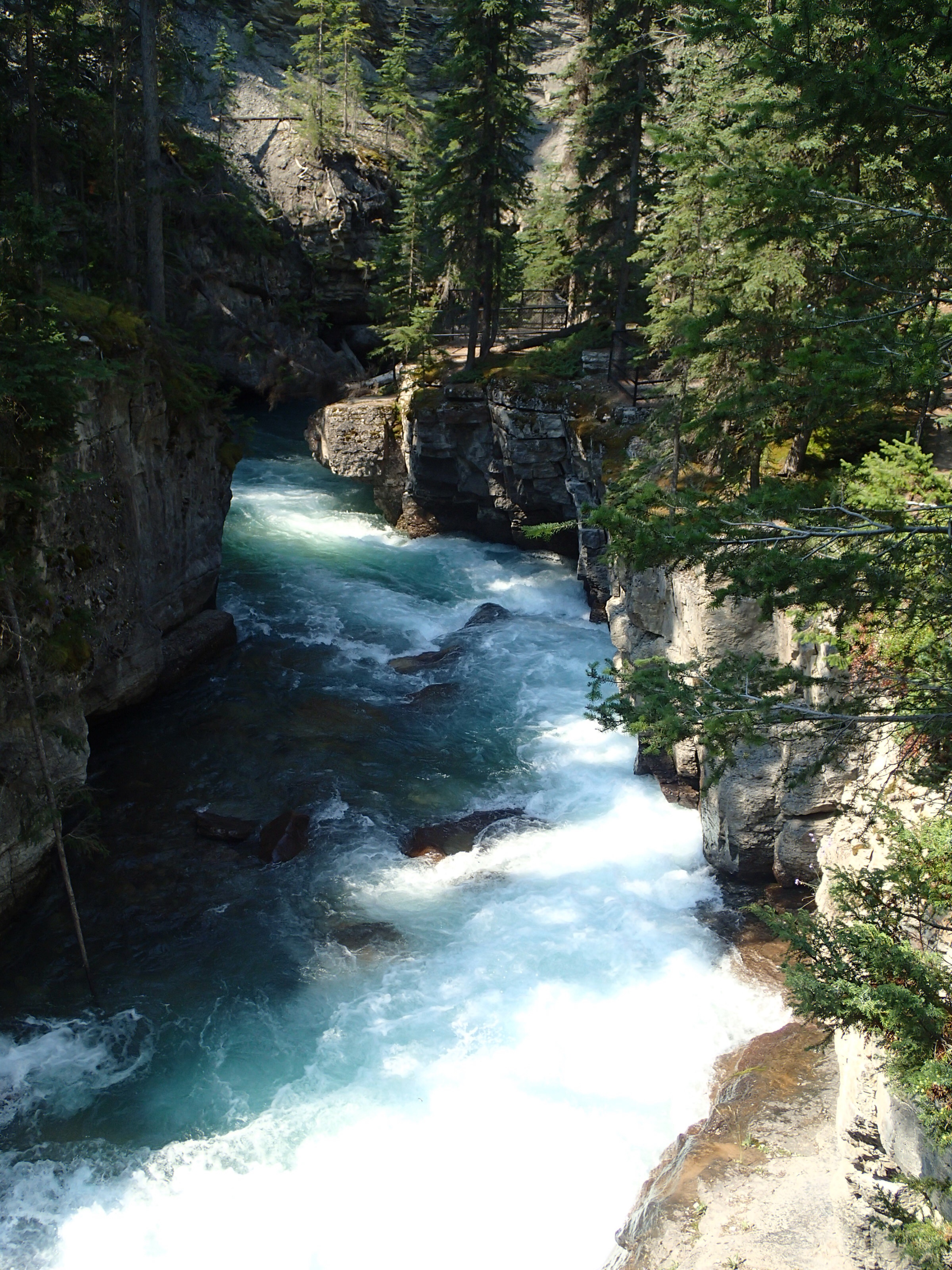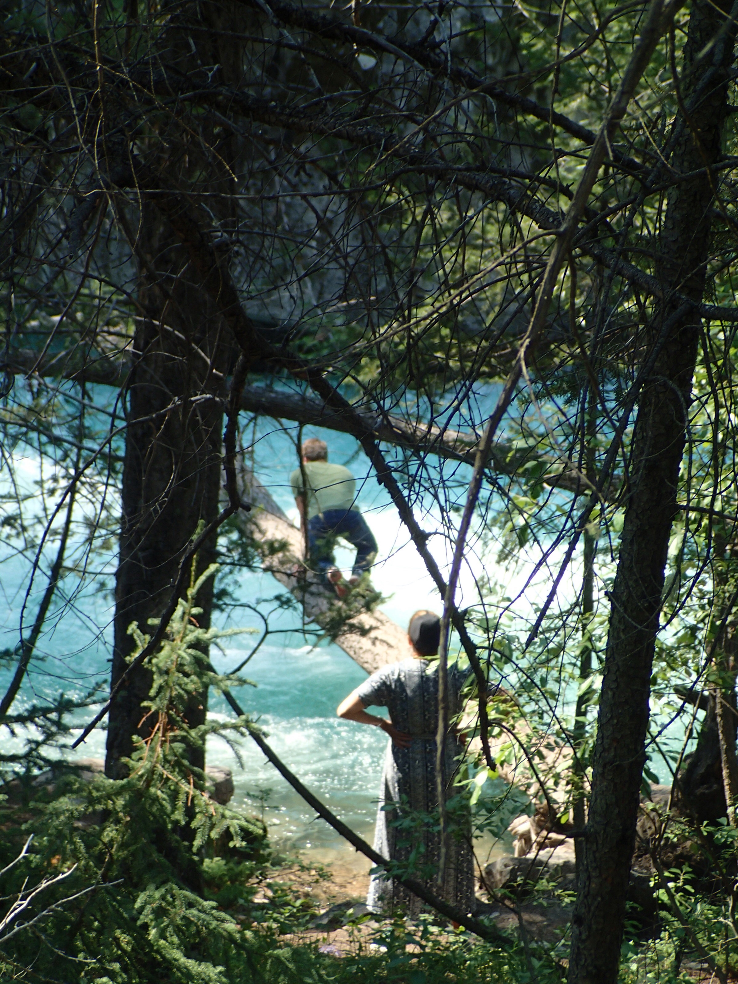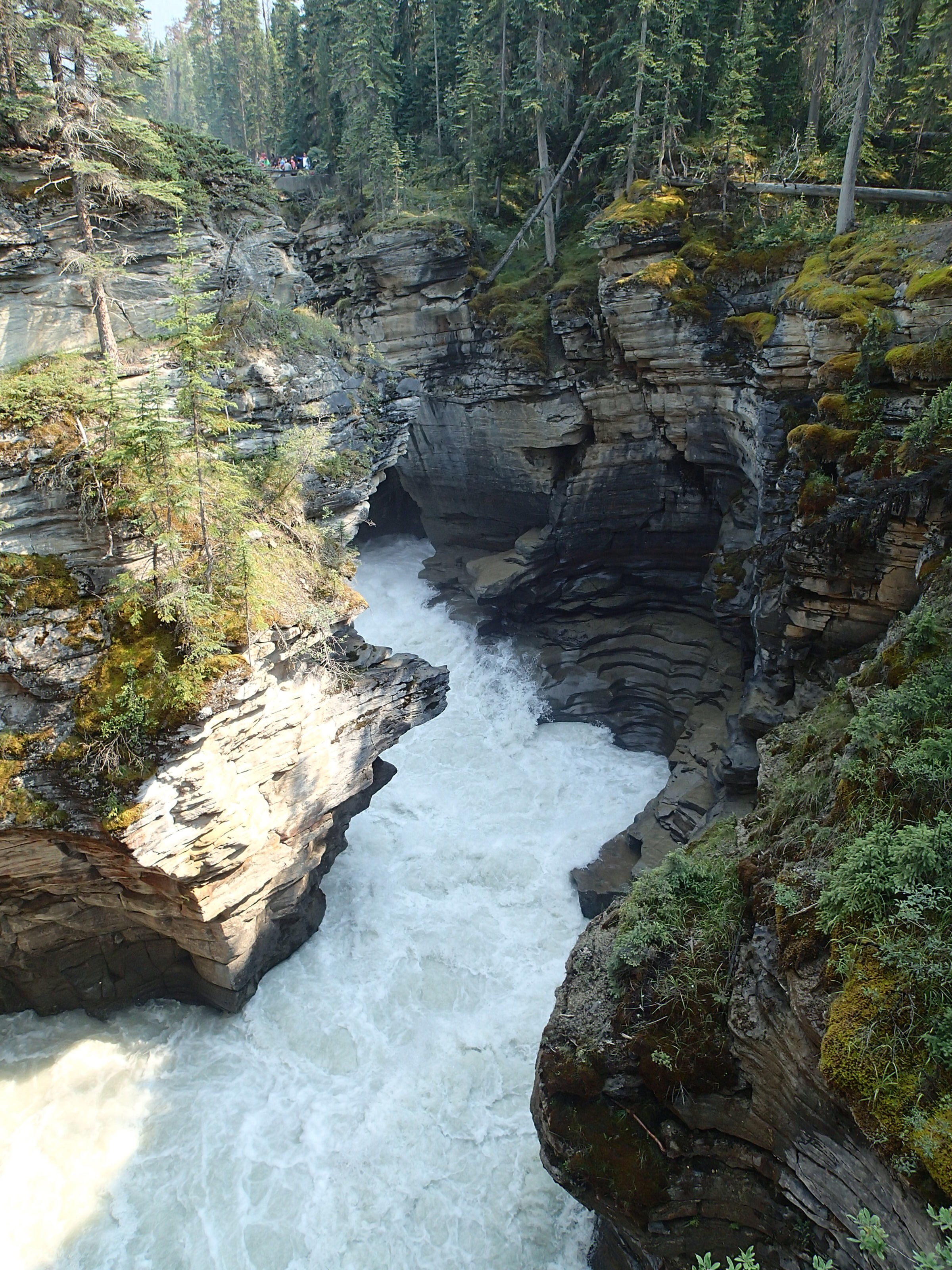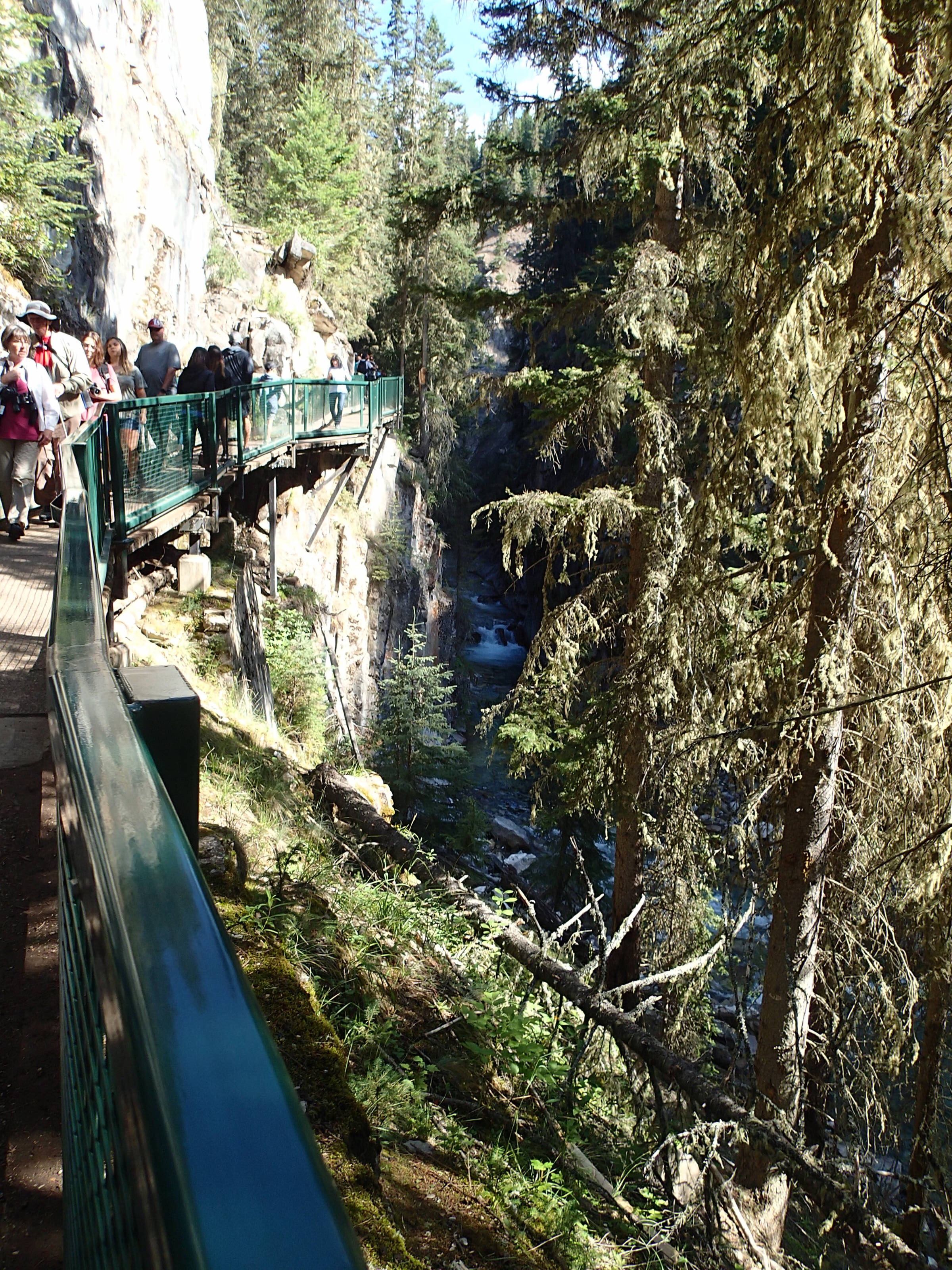Donc on décide de continuer vers le Parc National de Yoho qui est supposé aussi être un autre joyau selon le Lonely. Un attrait touristique est indiqué sur le chemin: natural bridge (non indiqué dans mon livre!). On décide d’y aller. Wow l’eau c’est creusé un chemin à travers la roche laissant la possibilité de passé sur le dessus en passant sur le mur de roche…mais d’ici quelques temps (???), une partie s’effondrera pour laisser place à une gorge profonde. Une chance qu’on c’est arrêté!