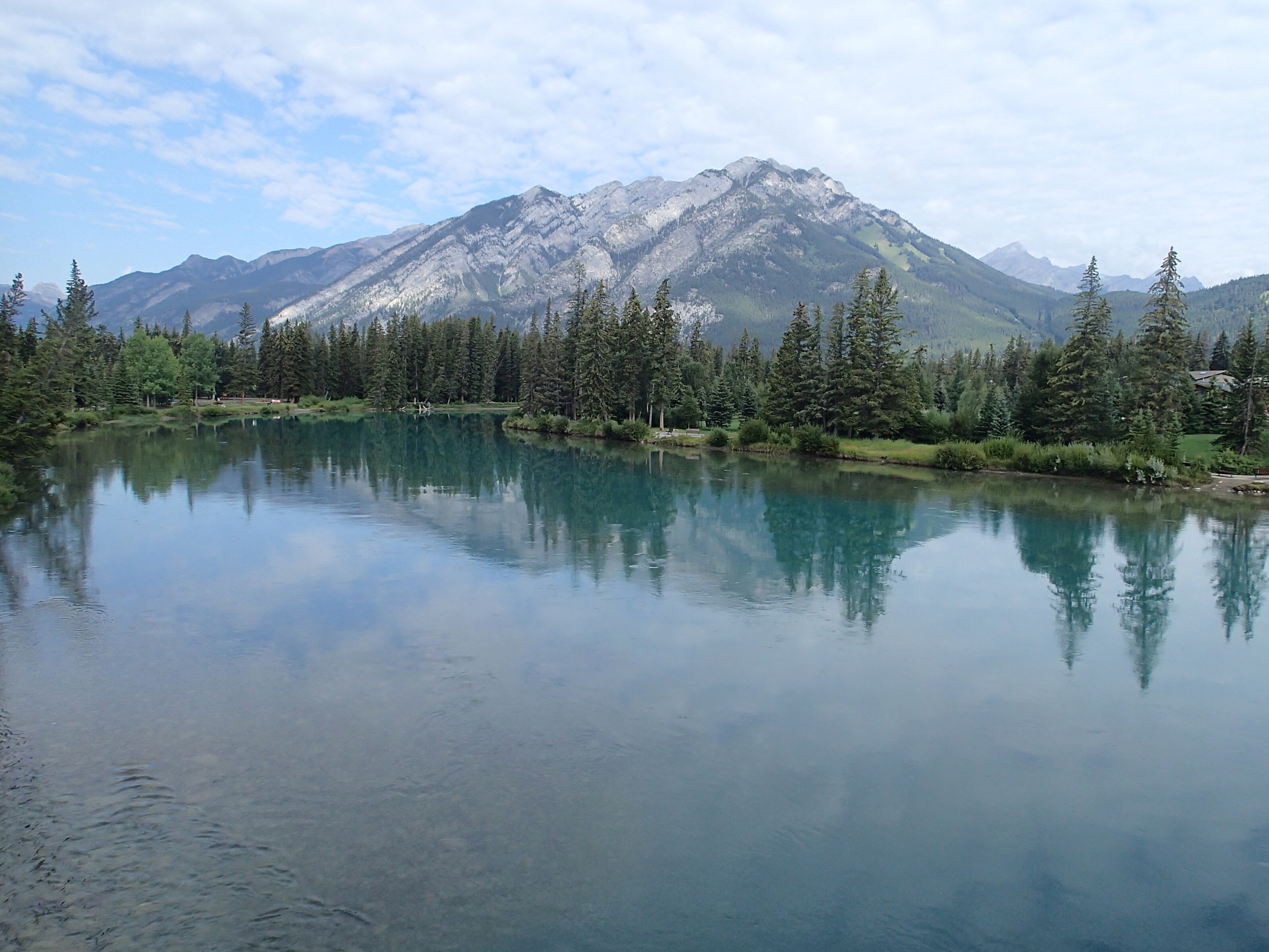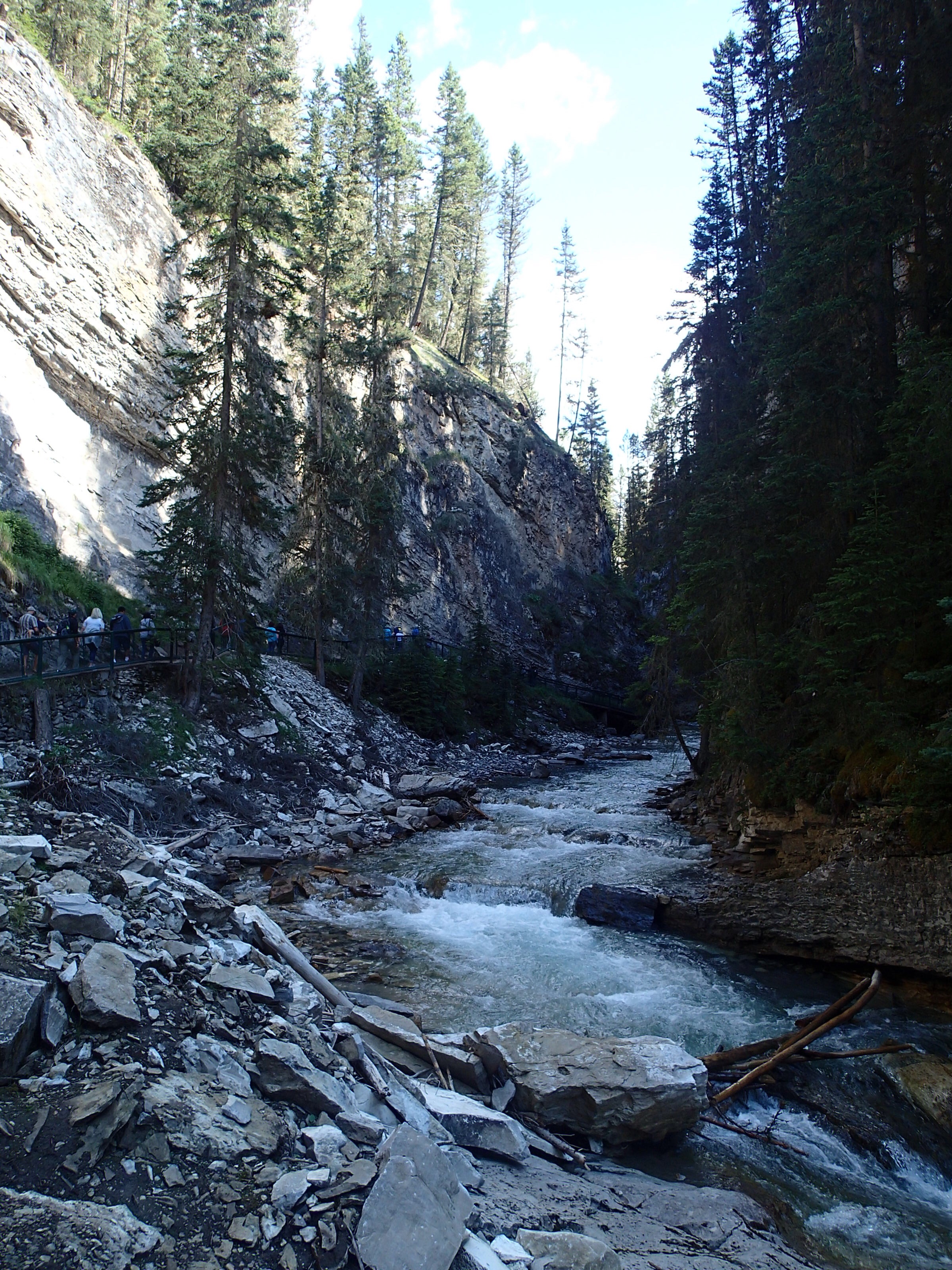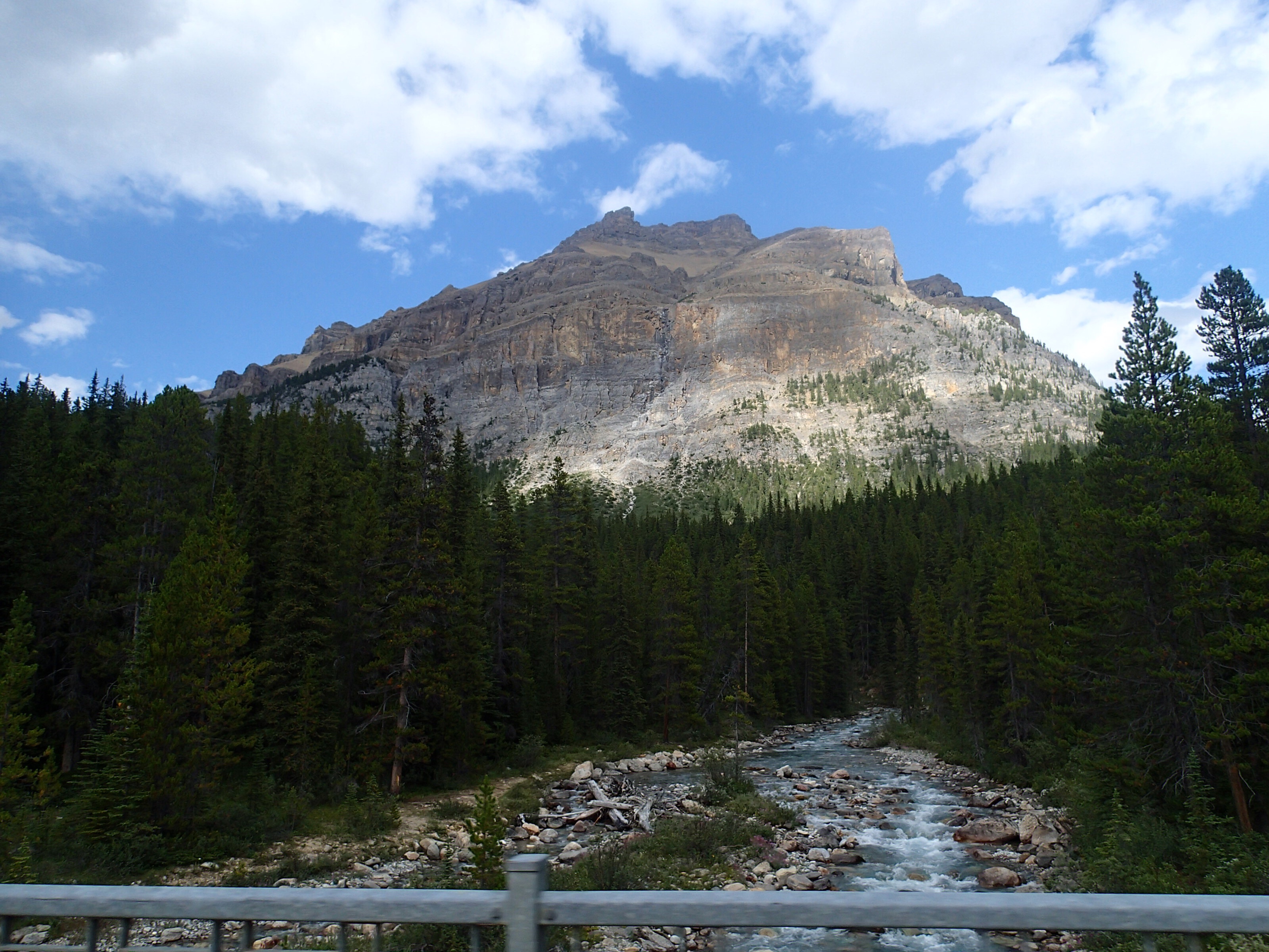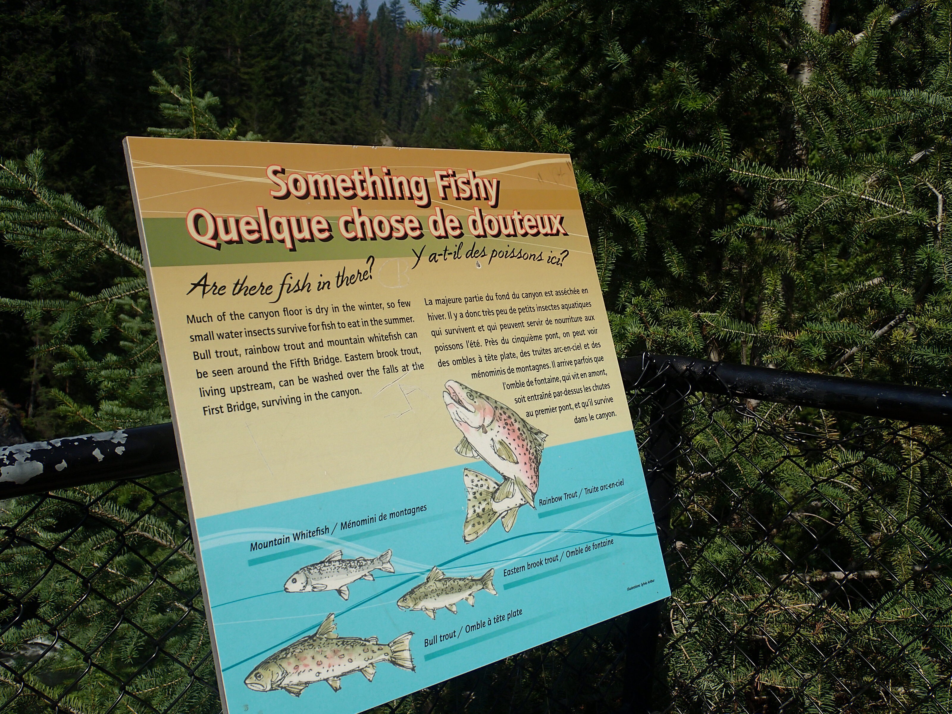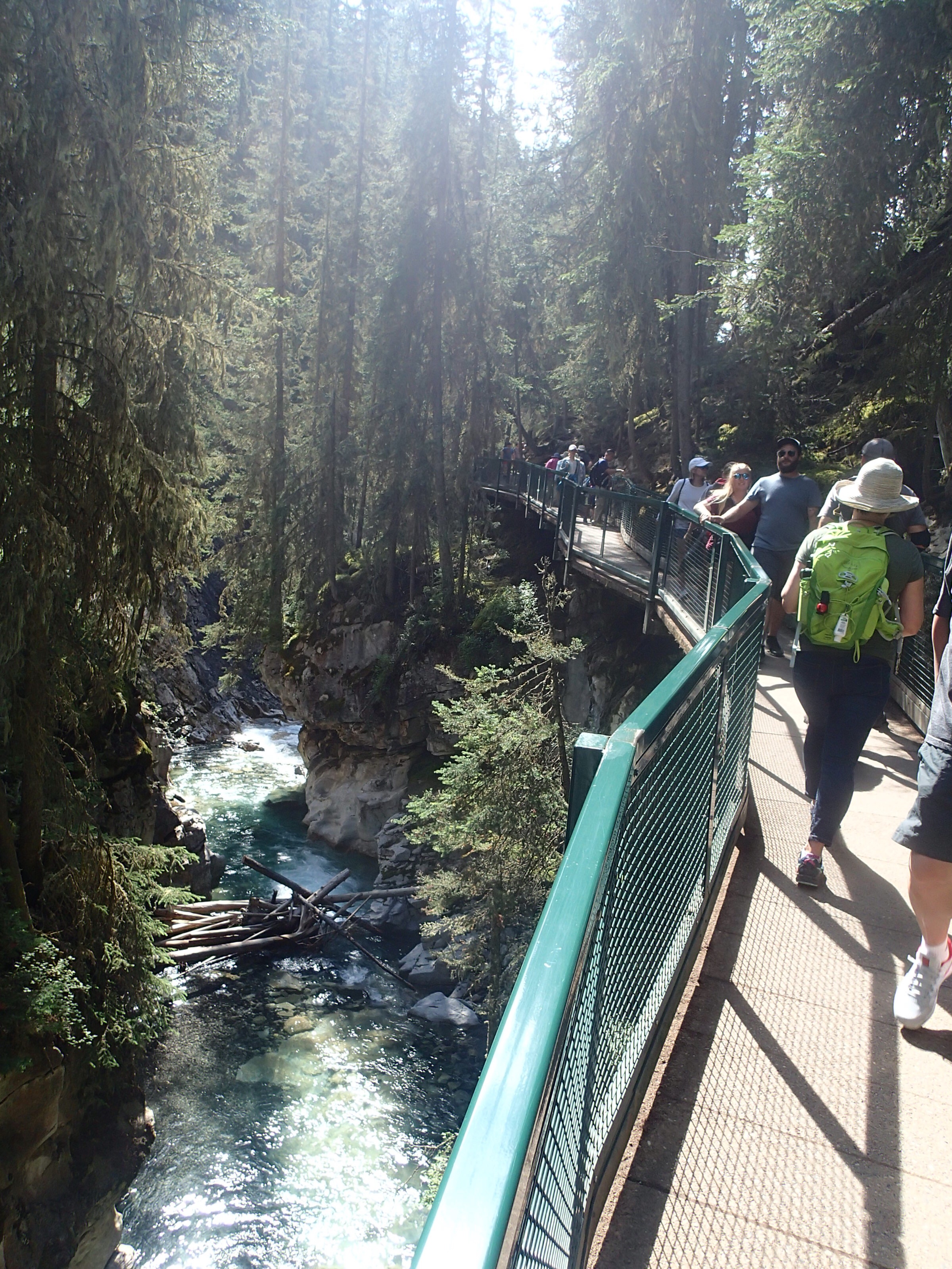 Donc on décide de continuer vers le Parc National de Yoho qui est supposé aussi être un autre joyau selon le Lonely. Un attrait touristique est indiqué sur le chemin: natural bridge (non indiqué dans mon livre!). On décide d’y aller. Wow l’eau c’est creusé un chemin à travers la roche laissant la possibilité de passé sur le dessus en passant sur le mur de roche…mais d’ici quelques temps (???), une partie s’effondrera pour laisser place à une gorge profonde. Une chance qu’on c’est arrêté!