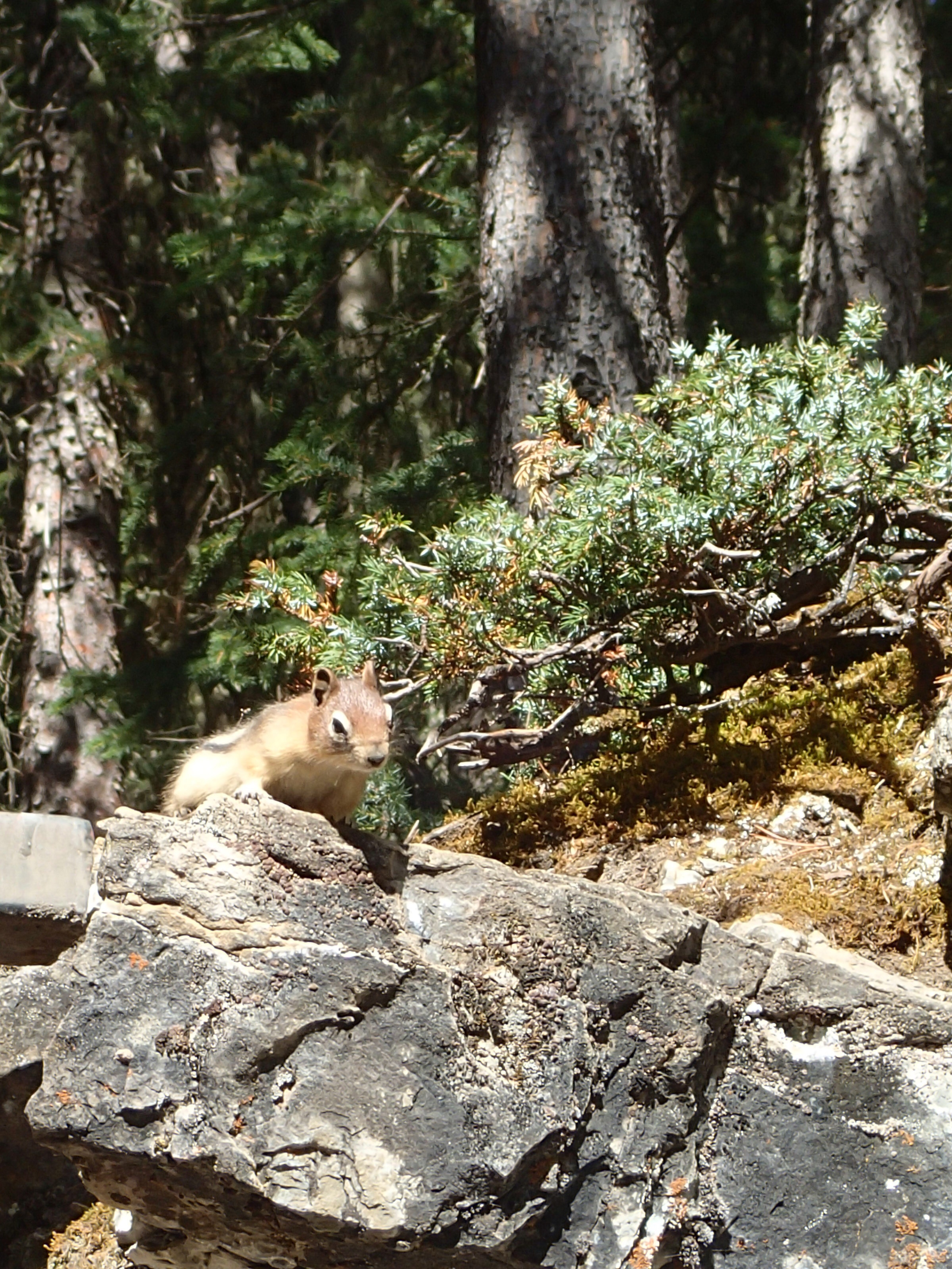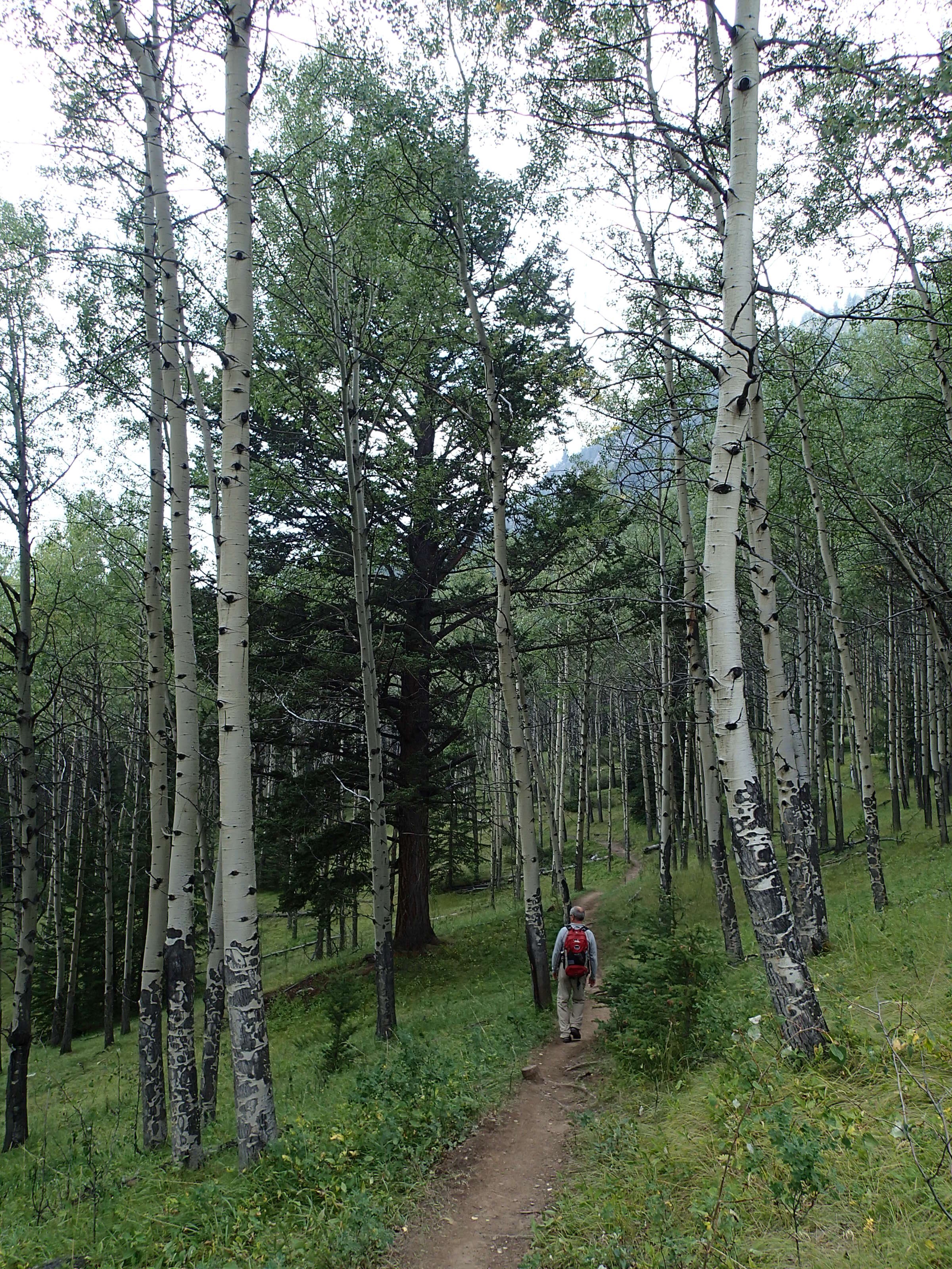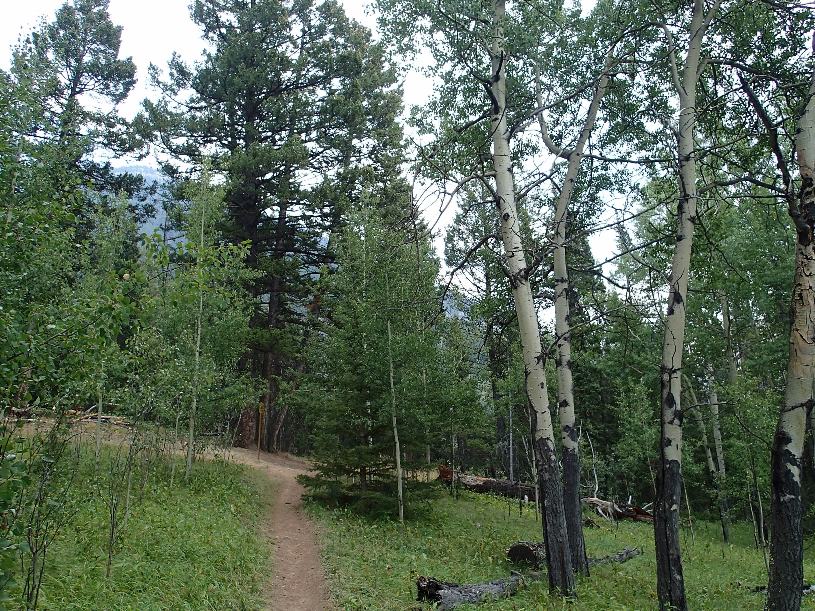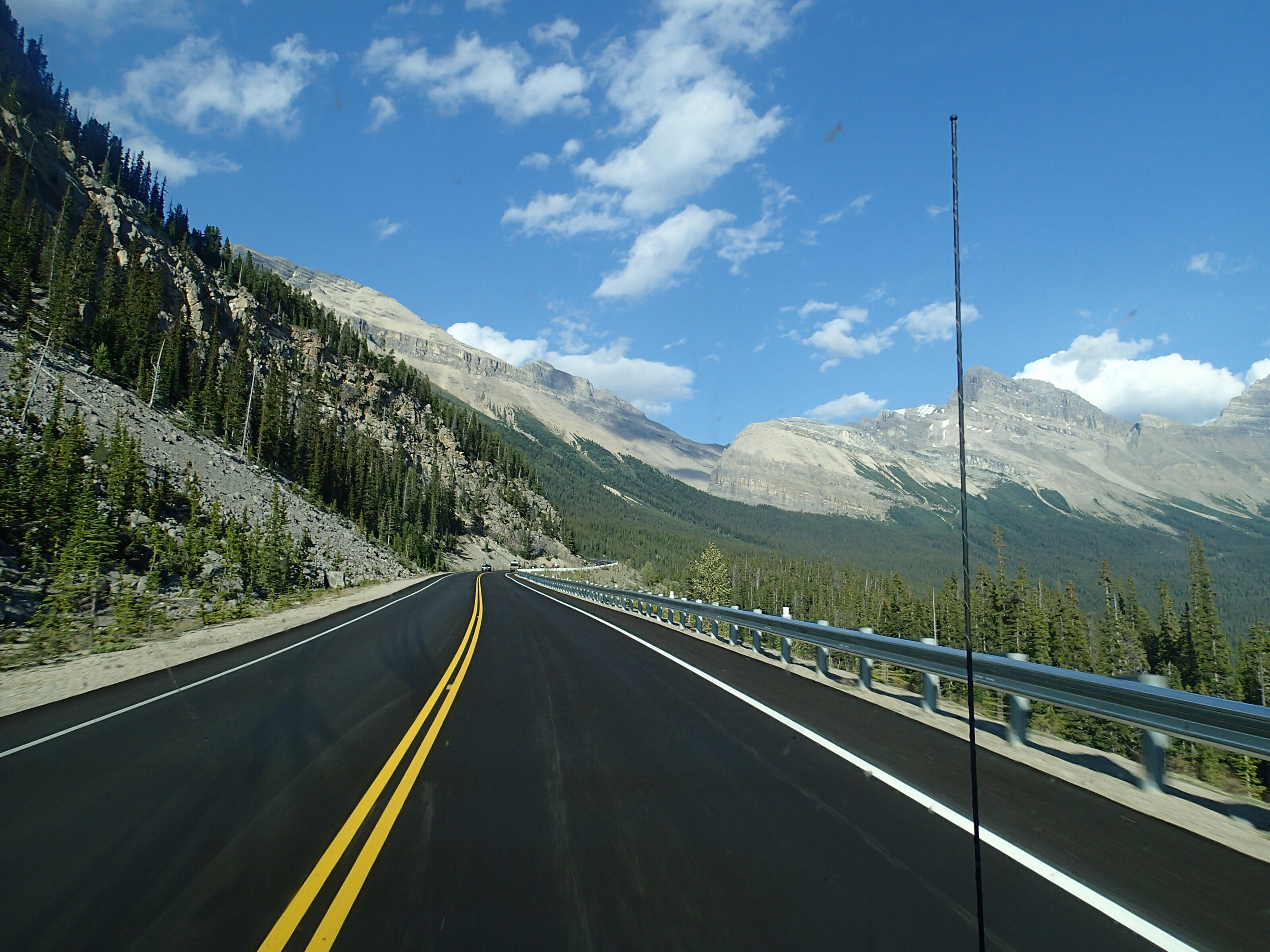 Ben non, on voit une indication pour une randonnée. On arrête, on enfile bottes et on part. 4.9 km pour voir le Col Edith! Ok…et bien on marche et marche, pis on a oublié de s’amener de l’eau… perdu l’habitude. Nath en arrache comme jamais car toute congestionnée au sinus depuis quelque jours. On voit des pancartes mais aucune indication des km restant. On voit du bois et du bois. Après un moment et beaucoup de monter (600m)., on voit une autre pancarte…eeeeeh des flèches sont indiqués pour les autres cols plus loin mais celui que nous avons choisi le moins loin …Ben pas de flèche! A gauche ou à droite!🤔🤔 bon ont choisi le point d’observation tout droit mais aucune aucune distance. On fera un pas mal long moment pis on virera de bords. Tu parle d’une randonné de merd….!