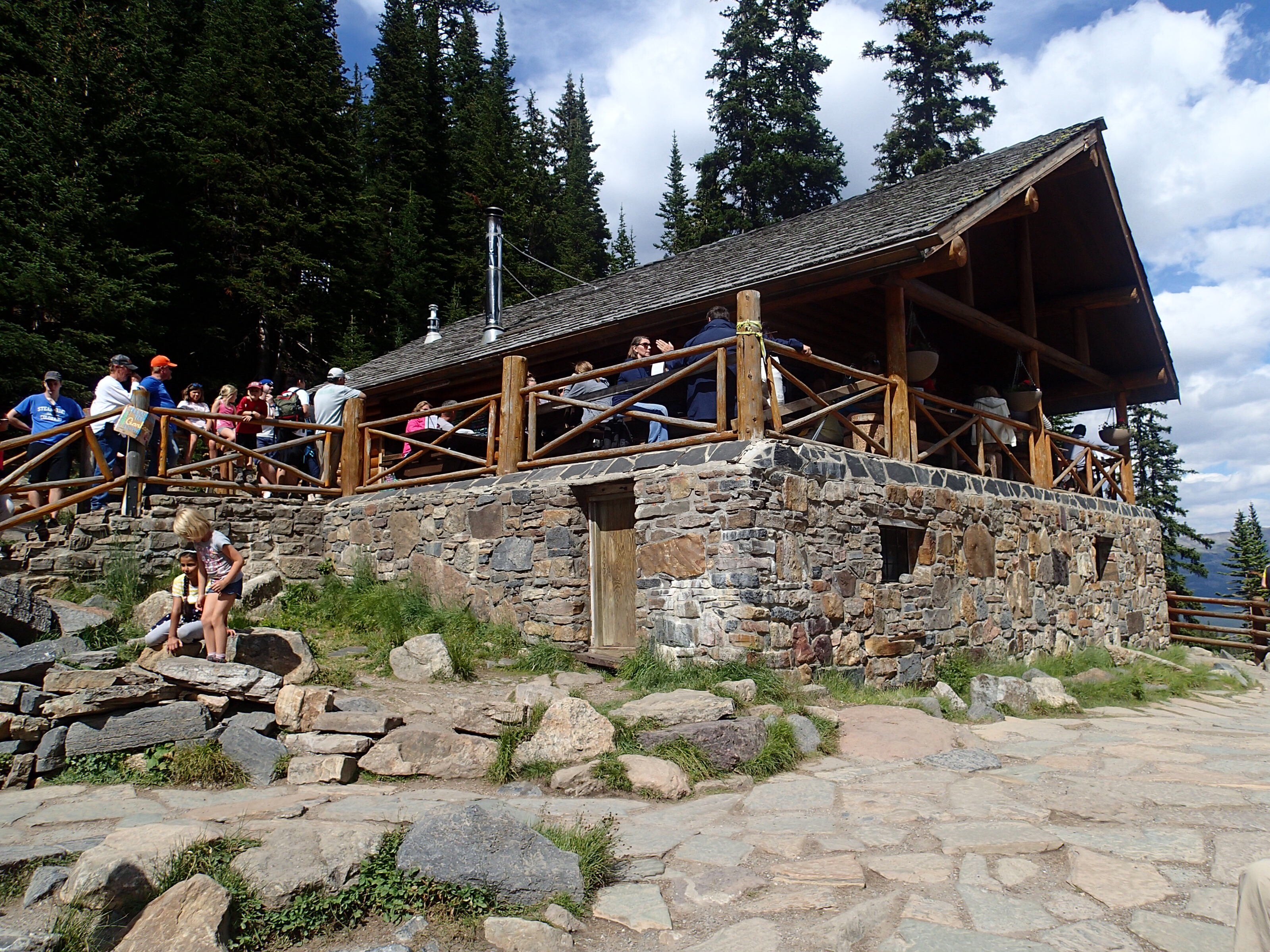 Quelques 3100m, nous sommes au points culminant et les sommets sont toujours timides mais on en voit quelques uns qui se dégênes! Tiens tiens, on rencontre quelques autres amis de la troupe, en fait pas mal tous sont là, le temps de quelques photos et aller hop on redescend en gondole car le temps est trop court pour faire autre chose et la température est assez froide. Puis à l’autre descente on split notre petite gang en deux. Seul moi et David retournerons en gondole question de se sauver les jambes pour le lendemain…et les autres ( Marjo, Annie, Denis et Fred) entamerons une course contre la montre (50 min pour redescendre cette partie contrairement à 1h30 pour la monté à pied). Puis on se retrouve tous encore sur la terrasse…comme on dit chez nous: « grosse vie sale »😎😁
