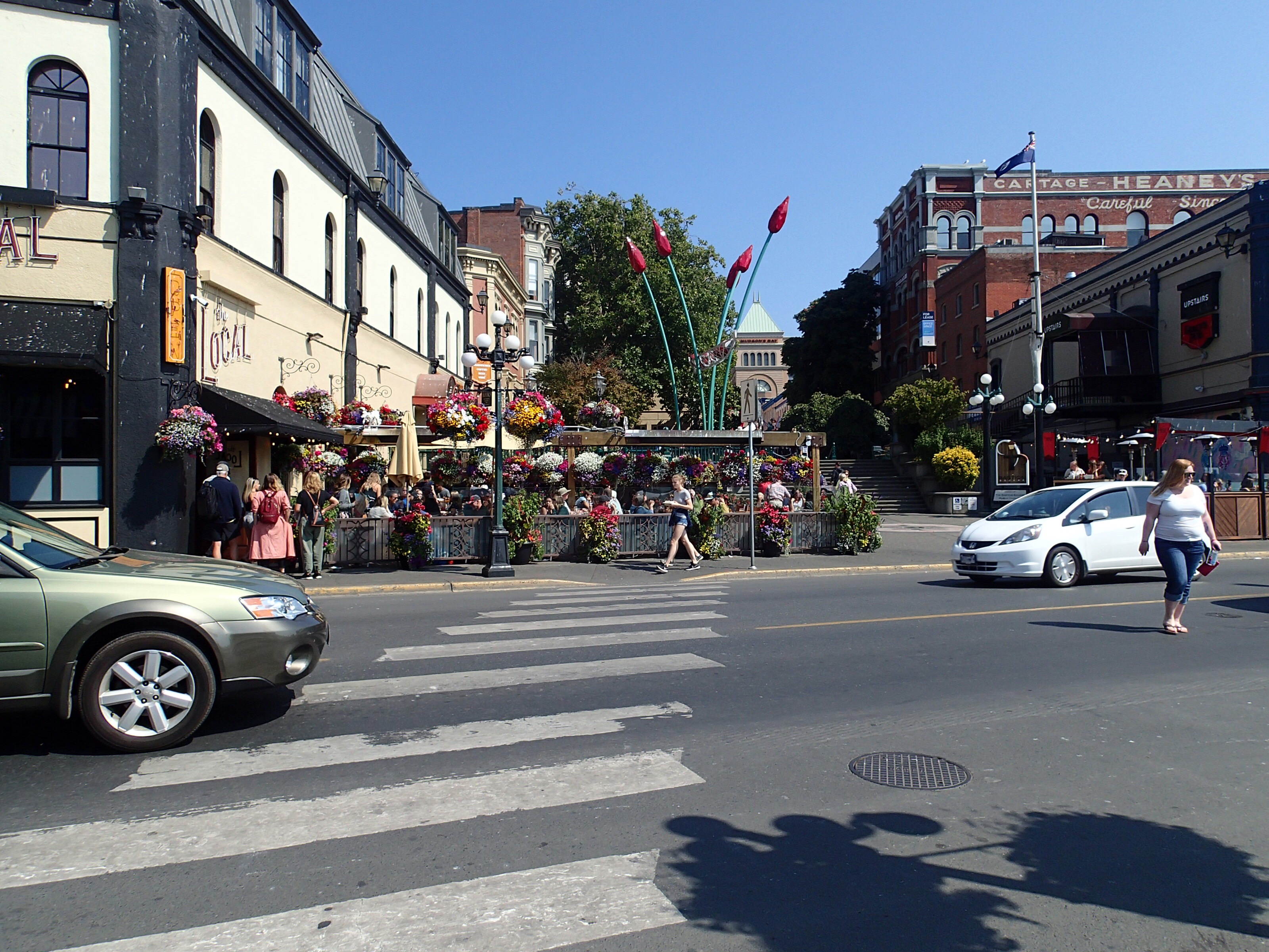 En chemin on est plus très sûr du coin car ça se dégrade royalement. Ça y est, on y est et le resto est splendide, une ancienne usine complètement restaurée (ils ont même garder le chain block au plafond!) au goût du jour, met en valeur les immenses cuves de bière et baril de chêne (ben oui c’est aussi une micro brasserie et ils y font aussi du vin!) ainsi que les poutrelles et plafonds en lattes… Pas de Ceviche! (décidément ce n’est pas parce qu’on est près de l’océan qu’ils en font ou bien ce ne fait pas parti de leur culture (ok je fais une croix là dessus ☹️)). La bouffe est tout à la hauteur de ce décor enchanteur. Les plats dans les micro brasserie sont toujours excellents! Petit bémol arrive; alors que l’on pense rester un peu à se prélasser de ce petit oasis on réalise qu’il nous est impossible de rajouter du temps au parcomètre car la ville limite à 2heures le temps au même endroit (vraiment pas génial pour les touristes qui veulent visiter downtown en marchant🤬🤯😖🤮). Alors on demande l’addition et c’est un peu la course pour essayer d’éviter la contravention… on arrivera finalement à temps et tant pis pour ce règlement stupide (de notre point de vue de touriste).