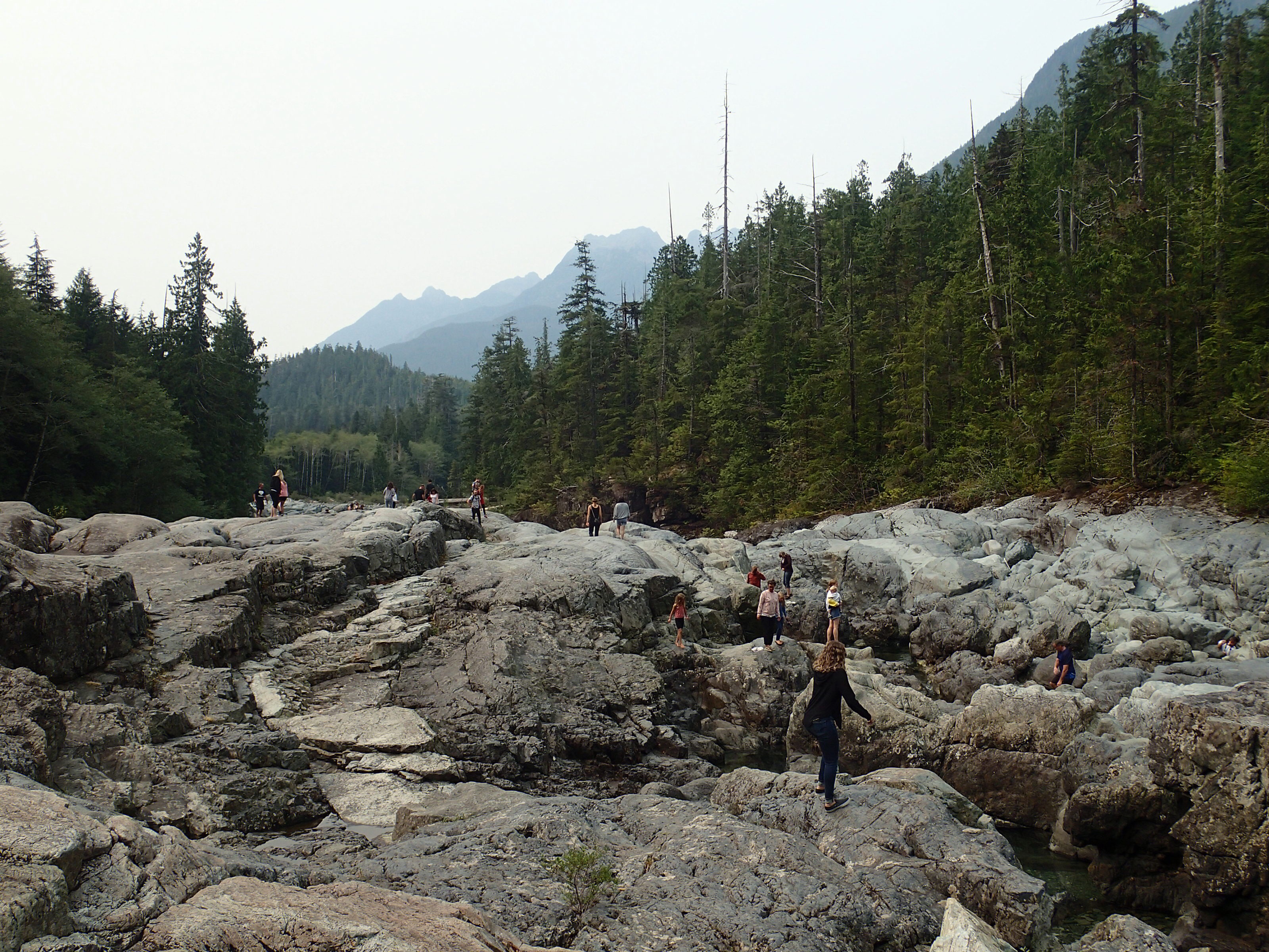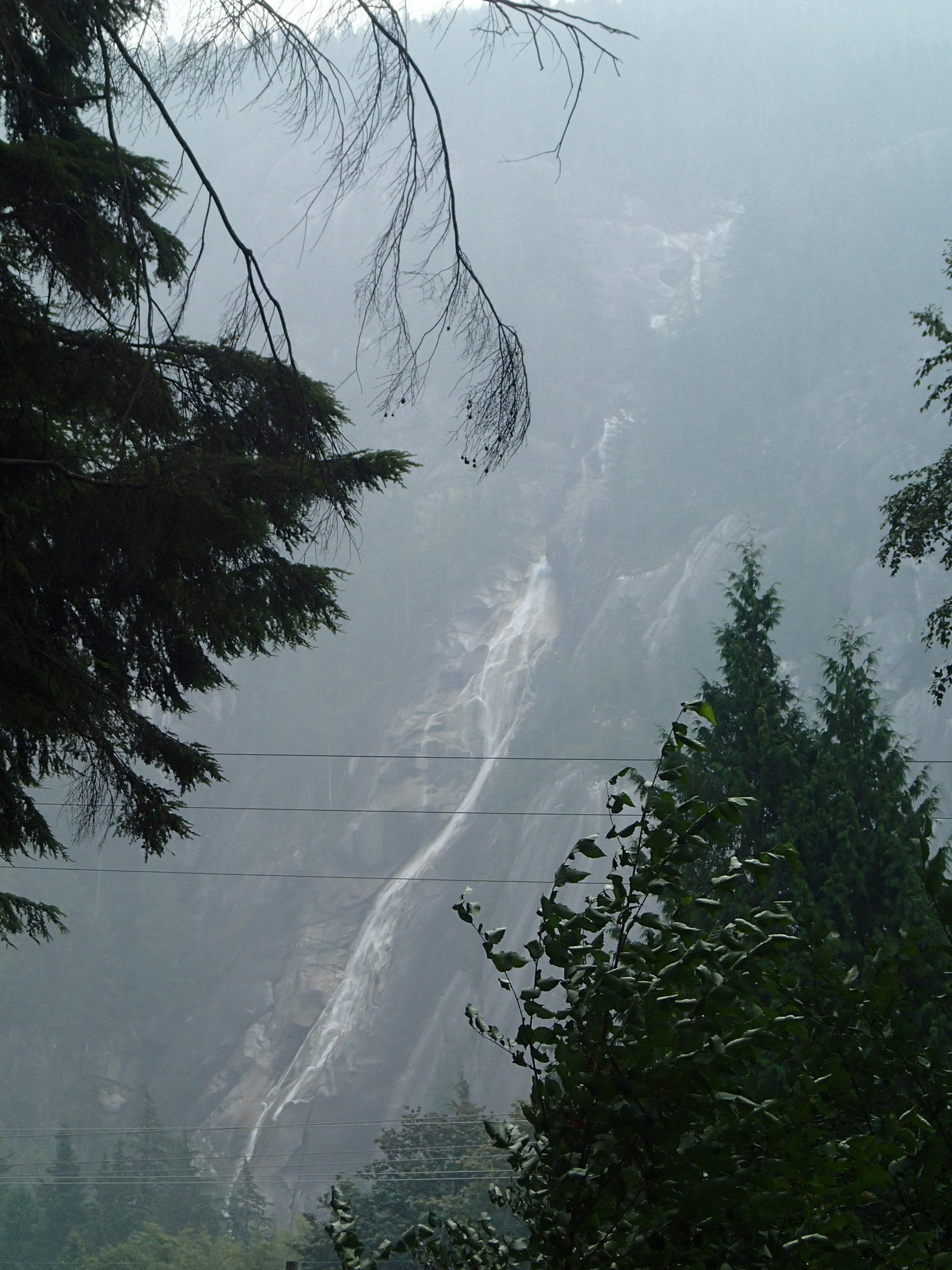 Sur la route on décide de s’arrêter à Squamish dans un petit camping tout près d’une chute vertigineuse: Shannon Falls de 335m (même si on ne la voit pas très bien avec la boucane). On s’installe et on pourra prendre nos douches ici. Souper sera du poisson qu’on a de congelé quand on était avec les amis 🤮 degueulasse c’est pas de la morue c’taffaire la, c’est quoi! T’avais raison Claude de pas vouloir en manger…on jette les autres morceaux congelés ,puis écriture emmitouflé comme on peut avec la lueur du fanal (toujours interdiction de faire des feux) et dodo.
