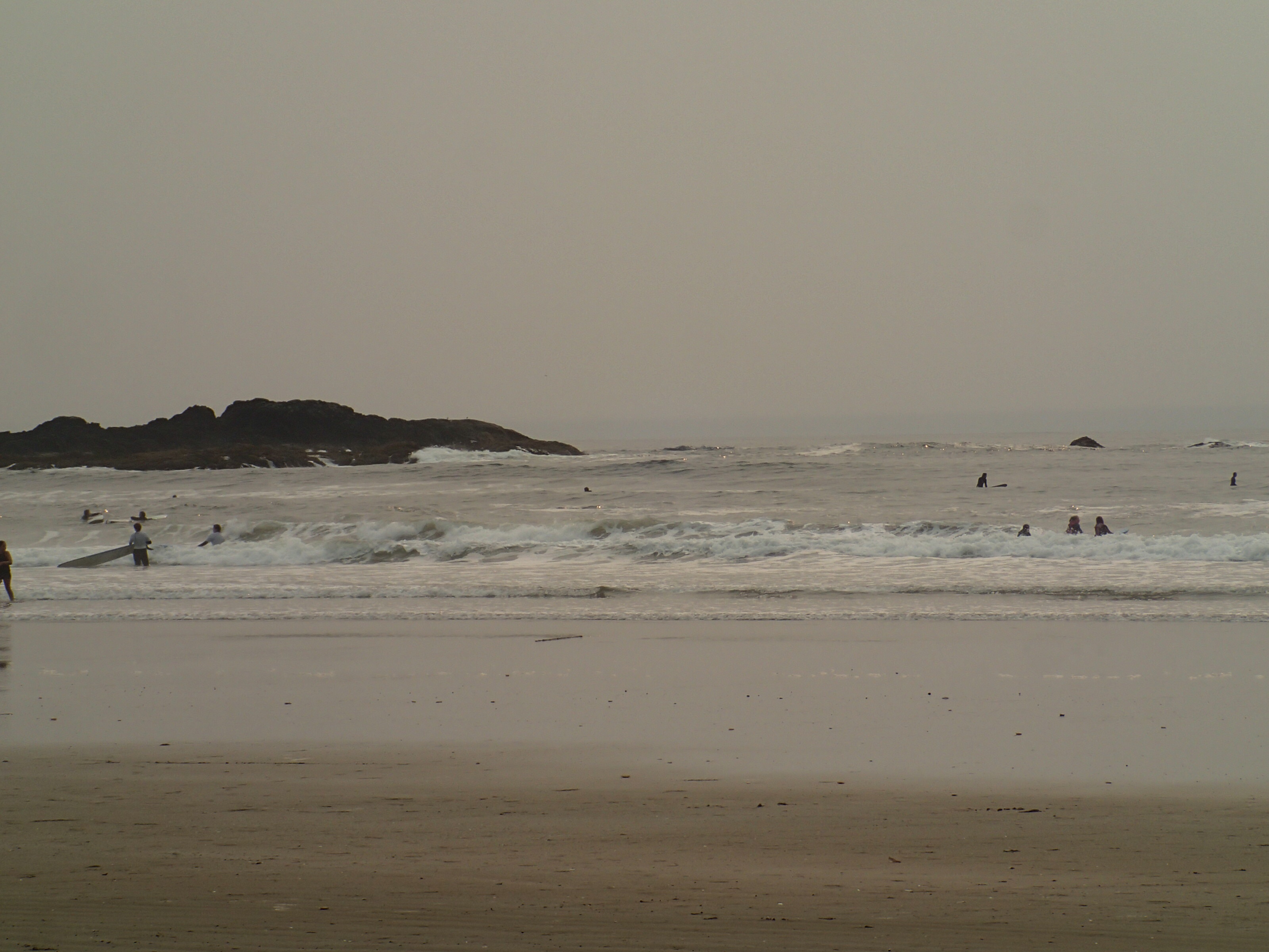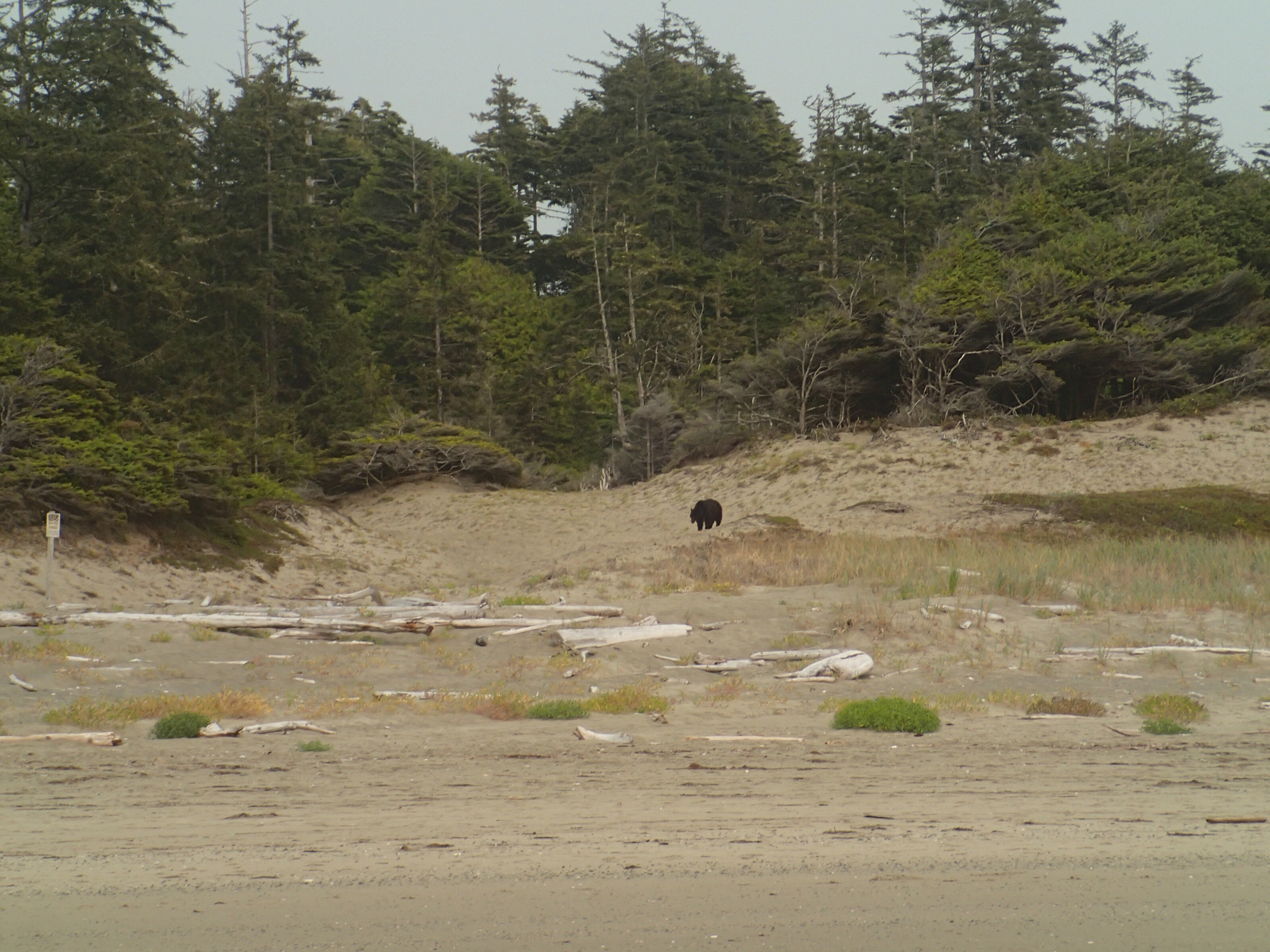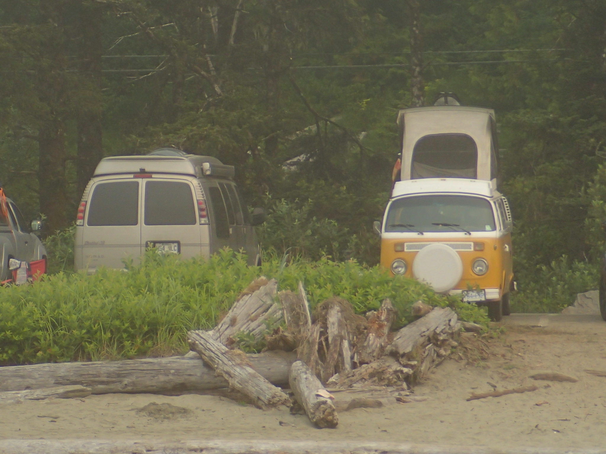 Retour au VR et on cherche un endroit pour dîner, les plages ici (Ucluelet) son Rocheuses et ne se prêtent pas vraiment à la faillante. Nous décidons donc de retourner vers le parc du Pacifique RIM (qui se trouve entre Tofino et Ucluelet) à la plage Florencia pour dîner. Petit lunch vite fait et hop sur la plage avec notre costume de bain (au cas) pour marcher les pieds dans l’eau (pas plus car ben trop frette!!,). Malgré l’eau à environ 54 degrés on a vue 2-3 personnes y aller sans “wet suit”!! Donc on aura été trop “poule mouillée” pour se jeter dans l’océan Pacifique! 😞