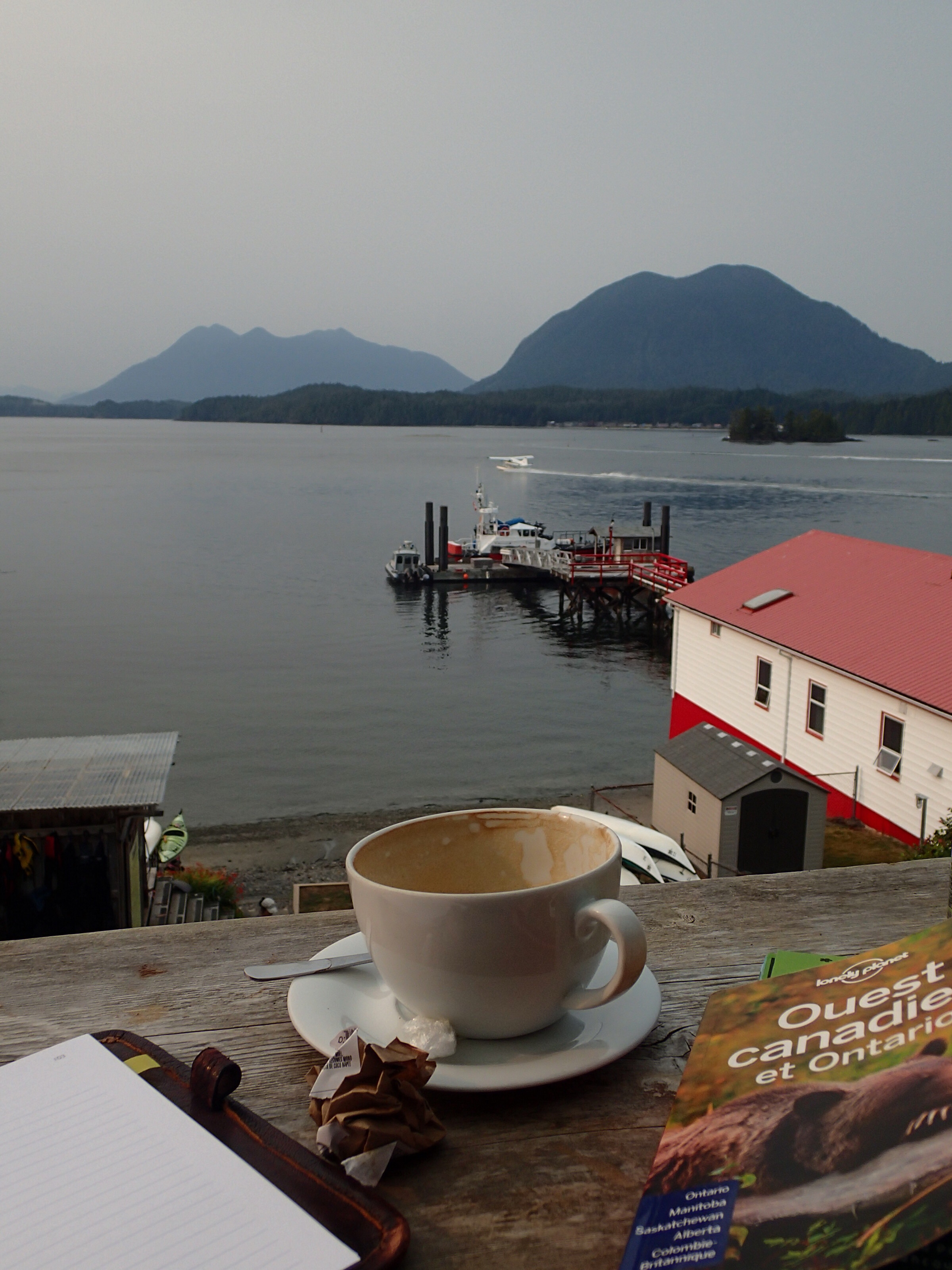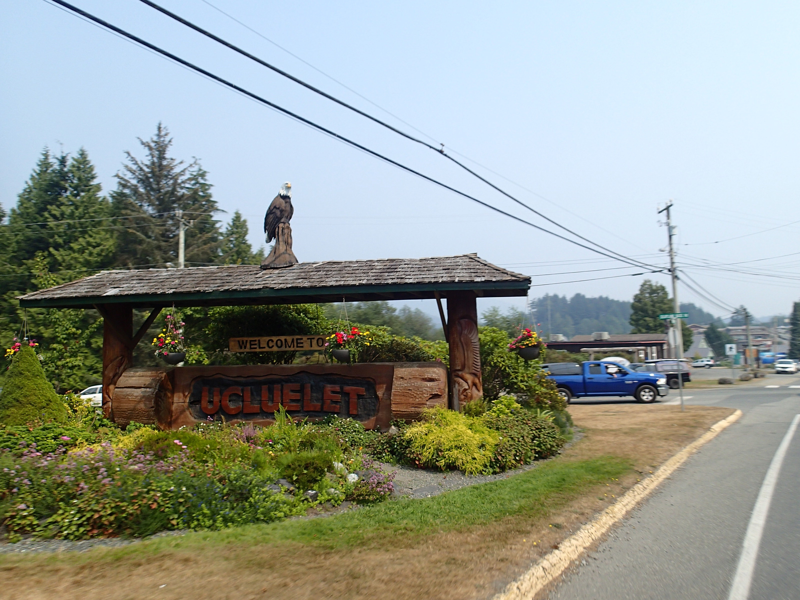 Départ pour Ucluelet afin de trouver le garage que Nath a localiser sur internet. On arrive à Ucluelet et le garage se trouve juste à l’entrée de la ville. Pas de place aujourd’hui mais Denis insiste sur le fait que nous sommes à notre dernière journée et devons faire beaucoup de millage pour le retour. La gentille proprio accepte de prendre le véhicule et de faire un scan afin de voir si le problème est grave et urgent ou autre. Bon plus de véhicule pour la journée, on prépare nos sacs à dos et nous voilà partis pour la ville, chemin faisant Nath regarde pour un salon de coiffure, on tombe pile et en plus il y a une place immédiatement… Denis ira prendre un café juste à côté en attendant sa douce moitié!!