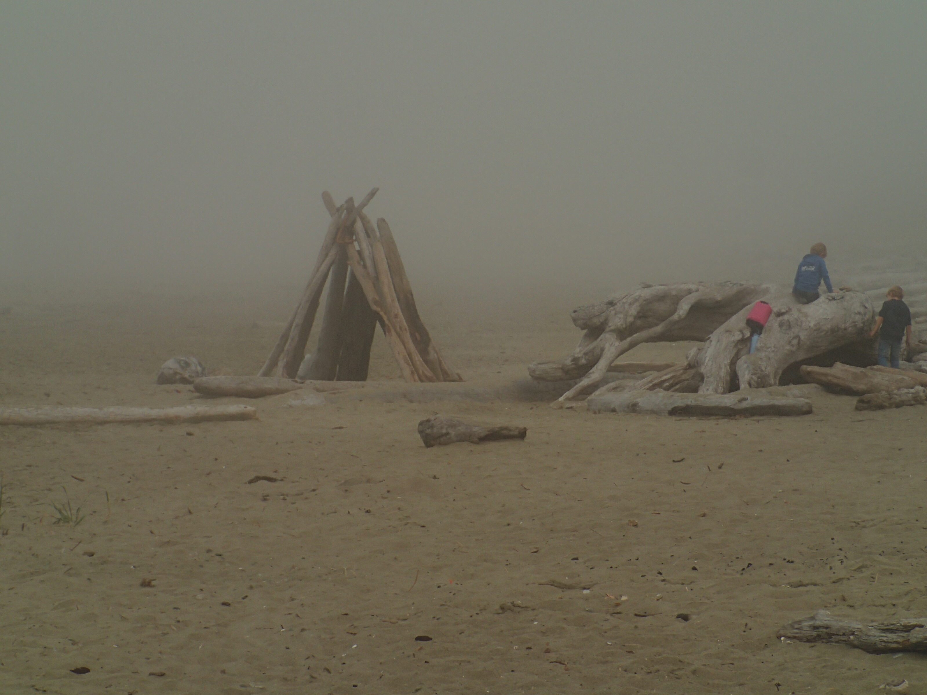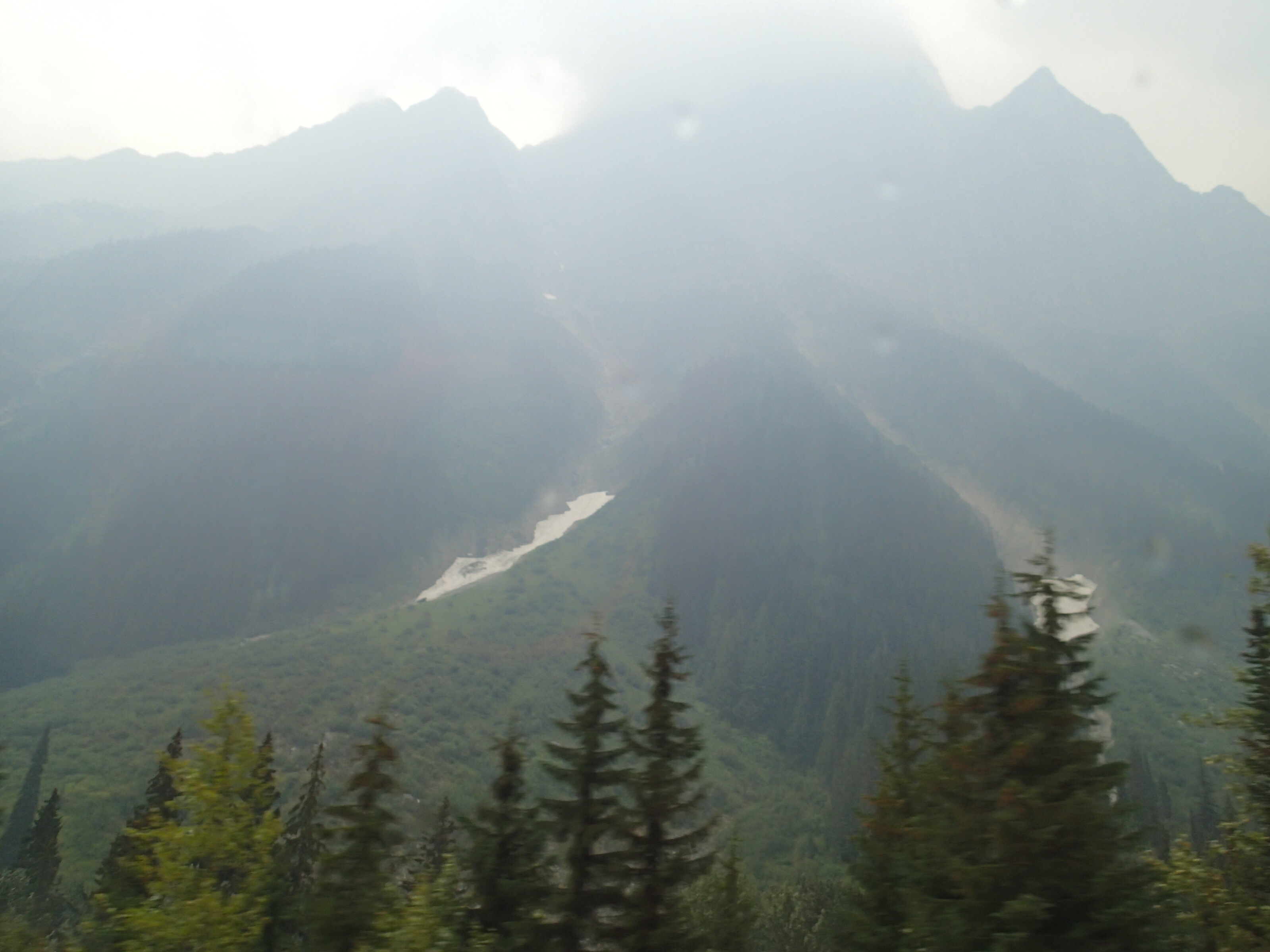 Puis la pluie vient de s’y mettre et ce n’est pas chaud! Donc on ni verra rien avec en plus la fumée …y a vraiment pas plus grande déception pour nous car on aperçoit à peine les Glaciers. Je pense que même s’il avait fait beau on ne les verraient quand même pas car ils doivent être accessible qu’en faisant de longues randonnées et malheureusement nous n’avons plus ce temps à cause des fermetures de route et notre date de retour qui approche.