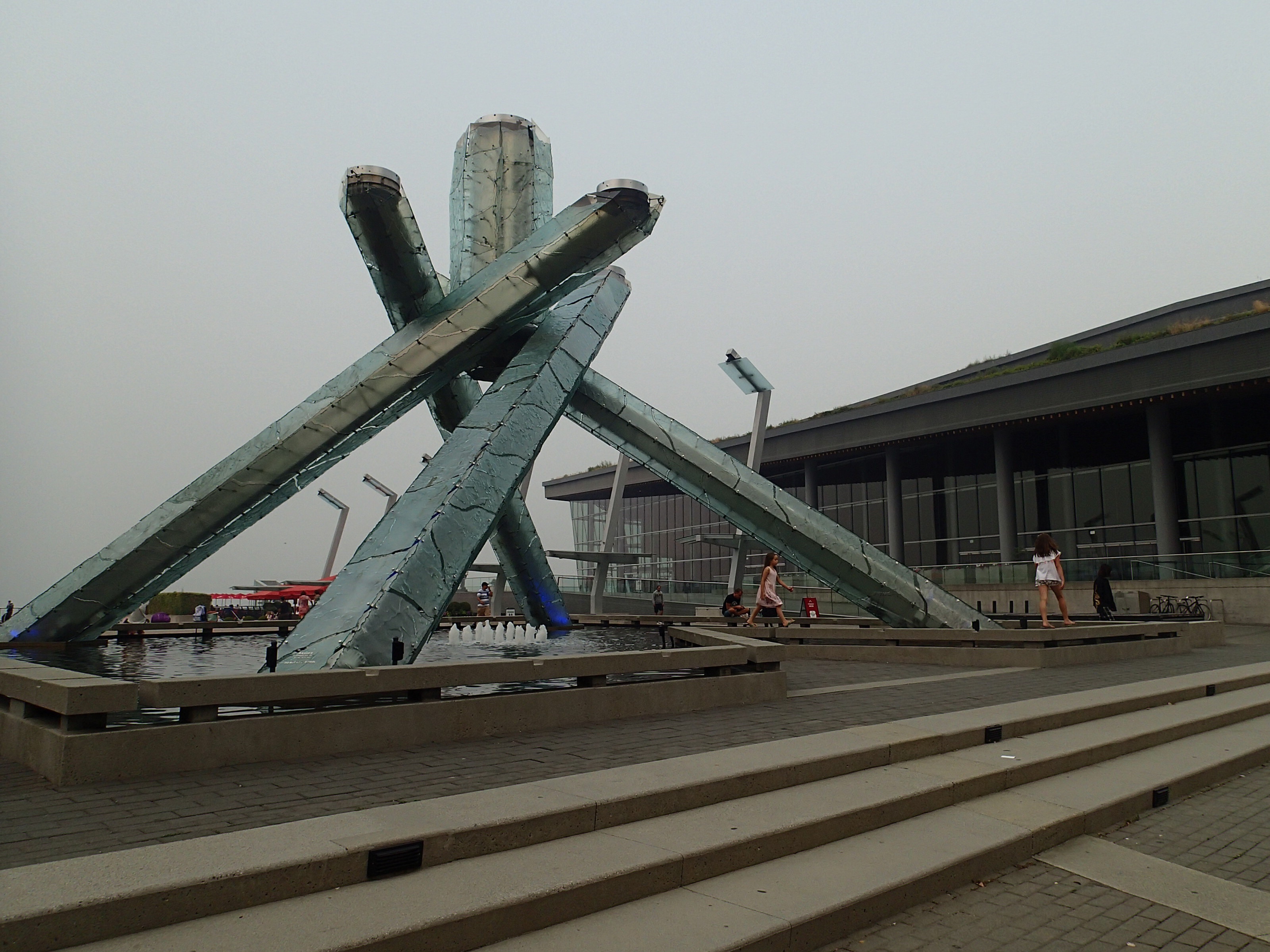 Alors la place du Canada est très bien situé, ici est encore bien présent l’esprit Olympique et même la structure ayant servie à la faire briller en 2010 est encore présente. Nath repère une attraction qui s’appelle FlyOver Canada, un genre de cinéma 3D avec des sièges qui bougent!!! On se laisse tenter par l’expérience (un peu dispendieux mais après tout tant qu’à y être autant jouer le jeux), on est chanceux car encore des places pour la représentation qui débutera dans 5 minutes!! Wow c’est comme si on parcourait le Canada en Delta plane d’un Océan à l’autre en environ 10minutes. Les effets sont hallucinants (pas surprenant car Moment Factories à participé aux images et montage), c’est tellement réaliste qu’a certain moment on lève nos pieds car on croirait presque toucher le sol….à l’occasion on reçoit même des petites gouttelettes d’eau lors de passage de chute d’eau ou autre…. Wow, on sort complètement mystifiés et enthousiastes de l’expérience!!! Alors, il se fait tard on va sortir de la ville et prendre la direction de Whistler.