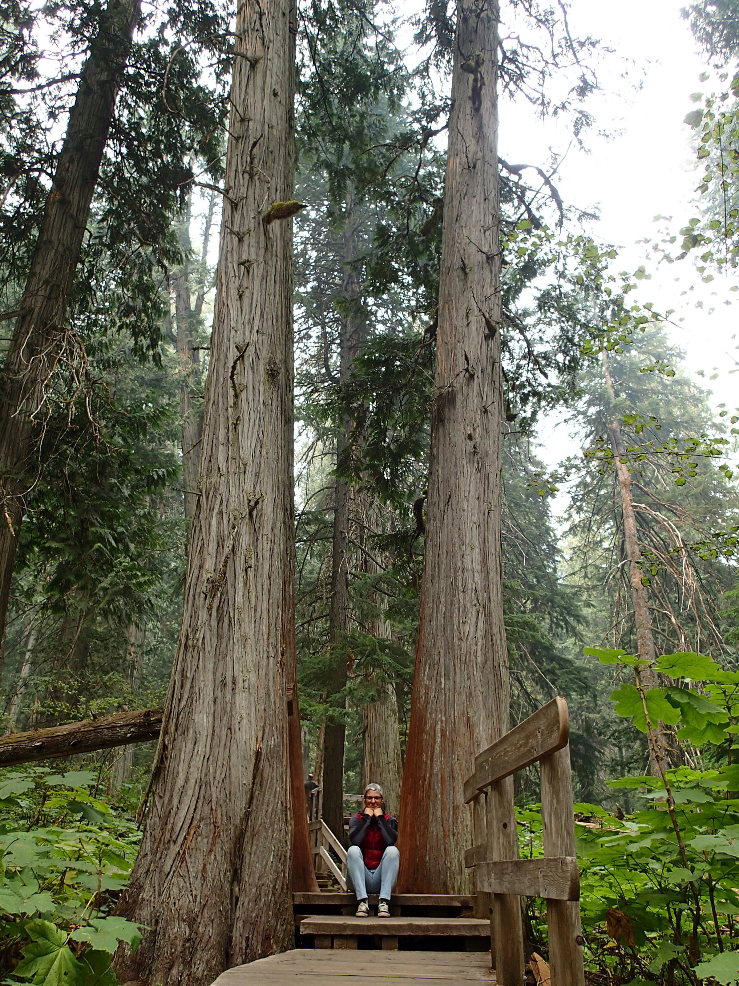 Et oui le train a passé plusieurs fois cette nuit aussi! On est sur l’autoroute des trains. En déjeunant on fait l’itinéraire et cette fois un autre fermeture de la route 1 mais cette fois après Revelstoke au Col Rogers qui lui est dans le parc des Glaciers. Bon comme nous on veut aller dans le parc et que les campements (first come first serve) et les randonnées à faire sont avant l’accident, bien on se dit que c’est correcte pour nous car en plus il nous reste 2 heures avant d’arriver là! Eh bien non on sera pris dedans solide et cela seulement quelques km avant d’arriver aux sentiers de randonnée. On en profites pour avancer le blog…je penses qu’il était 13h quand ils ont enfin ouvert le chemin…mais il y avait déjà toute une filée! On arrête faire les 2 randonnees pas trop longues propose par le Lonely : « Skunk Cabbage trail » (sentiers des choux puants) et puis « Giants Cedars Boardwalk ».