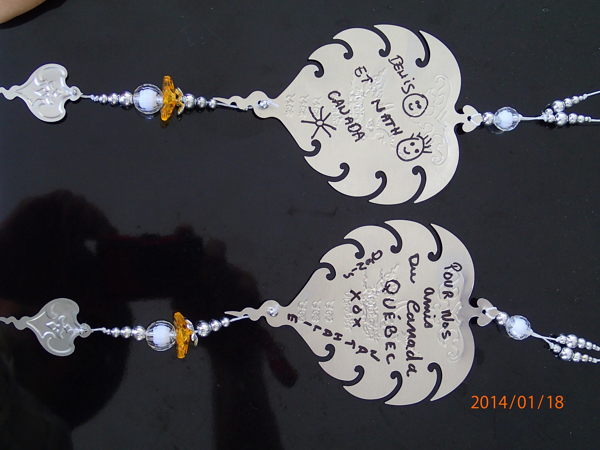 s aller un peu plus loin, là en tournant Denis frôle le parechoc d’une camionnette stationnée (manoeuvre de tournage serré tout en gardant l’équilibre et s’habituer à la poignée des gaz…) et perd un peu le contrôle, pas la catastrophe car aucun dommage et plus de peur que de mal!!! Hum! Sommes toute l’apprentissage entre lentement, la moto, conduite à gauche, repérer les directions, piétons, voitures, camions et Nath en arrière! Bon on est sortis de la ville….ouais! La route est belle et presque en ligne droite, arrêt dans un petit café pour pose pp et thé, la jeune demoiselle nous remet a chacun un jolie porte clé qu’elle fabrique! (Et là mon chum se sent comme un vrai biker, ça y est c’est maîtrisé)