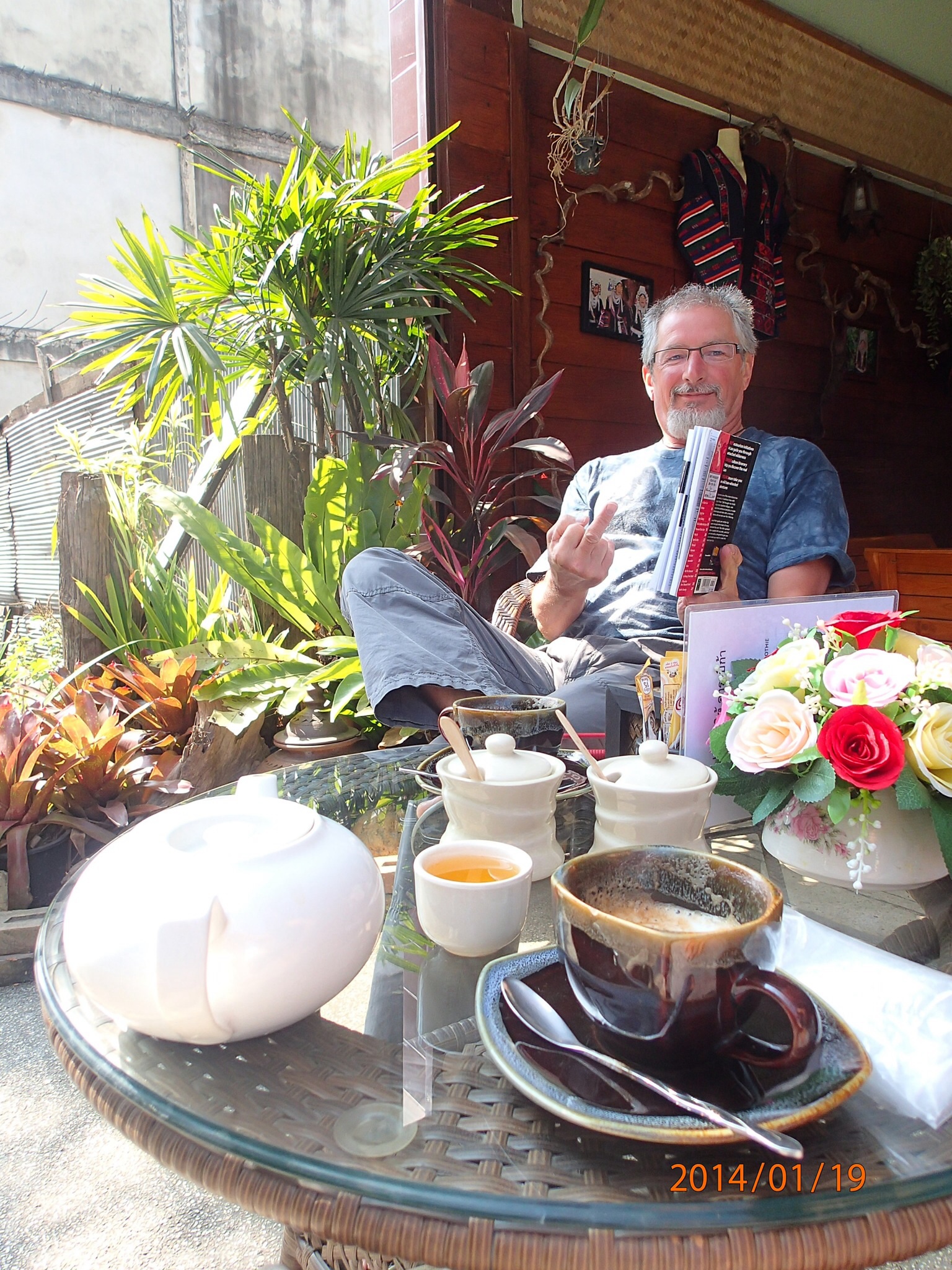 En sortant on réalise que juste en face se tient une exposition florale, on va y jeter un coup d’oeil! Bien fait, jolis arrangements autant naturels qu’artificiels. Après avoir fait le tour, on retourne vers le centre ville et après quelques indécisions on opte pour un café (genre pâtisserie) pour prendre une pose et continuer nos écris. Après ce sera la soirée Nath; on fait toutes les rues du night bazar sans finalement rien de plus de ce que