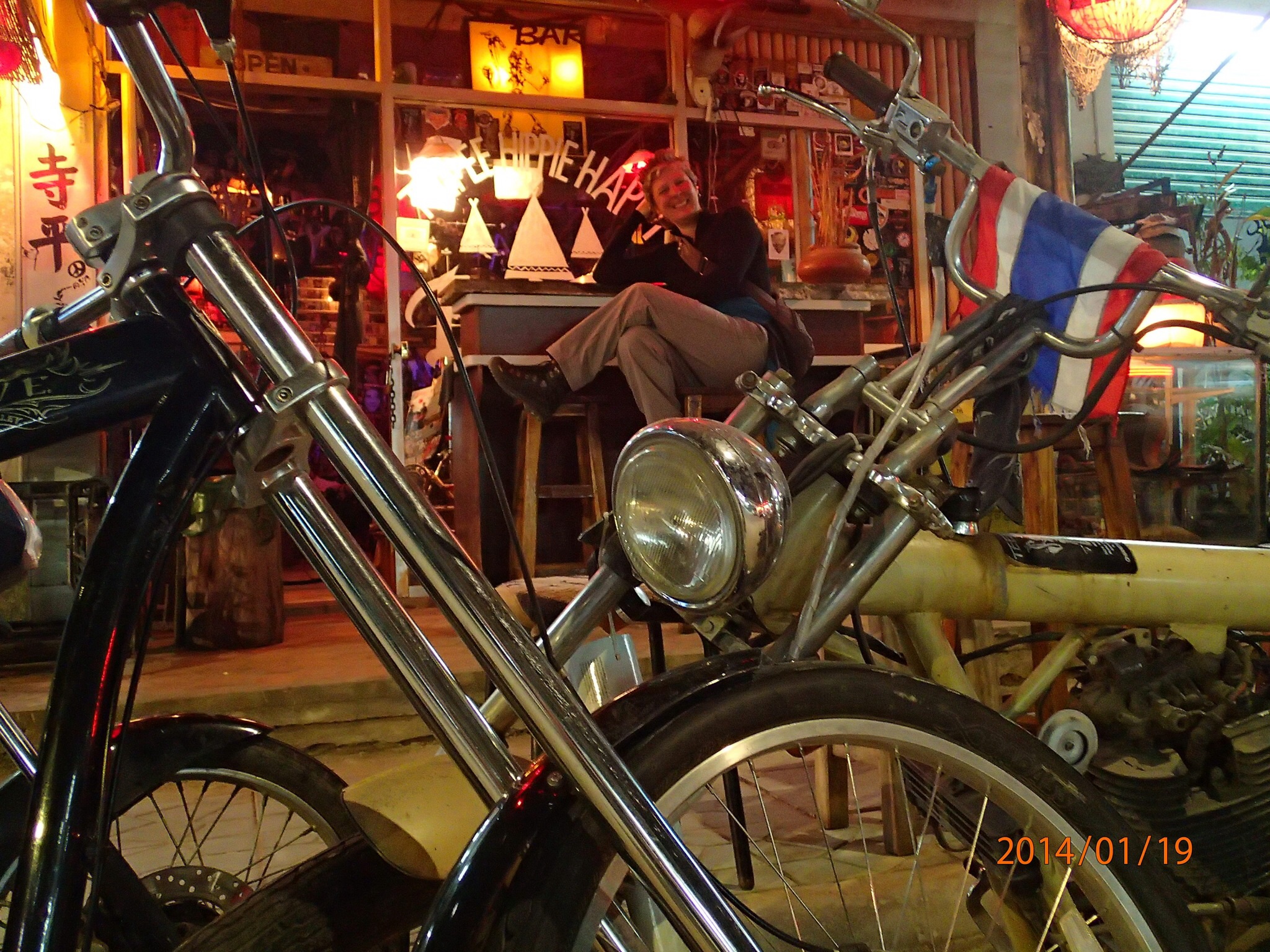 n et dans les 4 directions il est indiqué le même numéro de route!!! (bien content d’avoir une carte!). Arrêt dans le Happy House pour pause postérieur (un scooter c pas une Harley!) et se rafraichir un peu. Reste du trajet sans encombre, ouf mission accomplie (130km) on pourra désormais se déplacer en moto!!