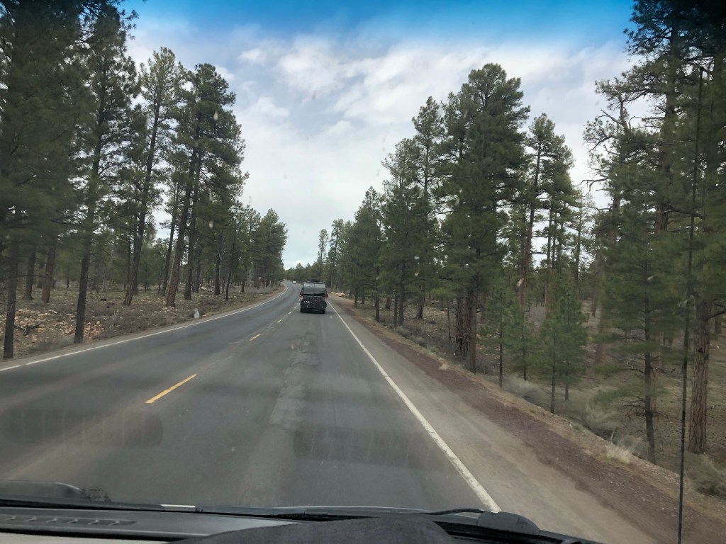 On roule à la noirceur sur la route i-70. Ça doit être beau le jour mais le soir avec notre van qui n’a pas de super lumière, c’est pas le fun du tout 😱et la rivière à côté a de l’air de couler a flot. Les grosses Van qui connaissent le chemin nous dépassent. C’est bien une autoroute mais les virages sont serrées et les lignes pas toujours visibles. 🫣