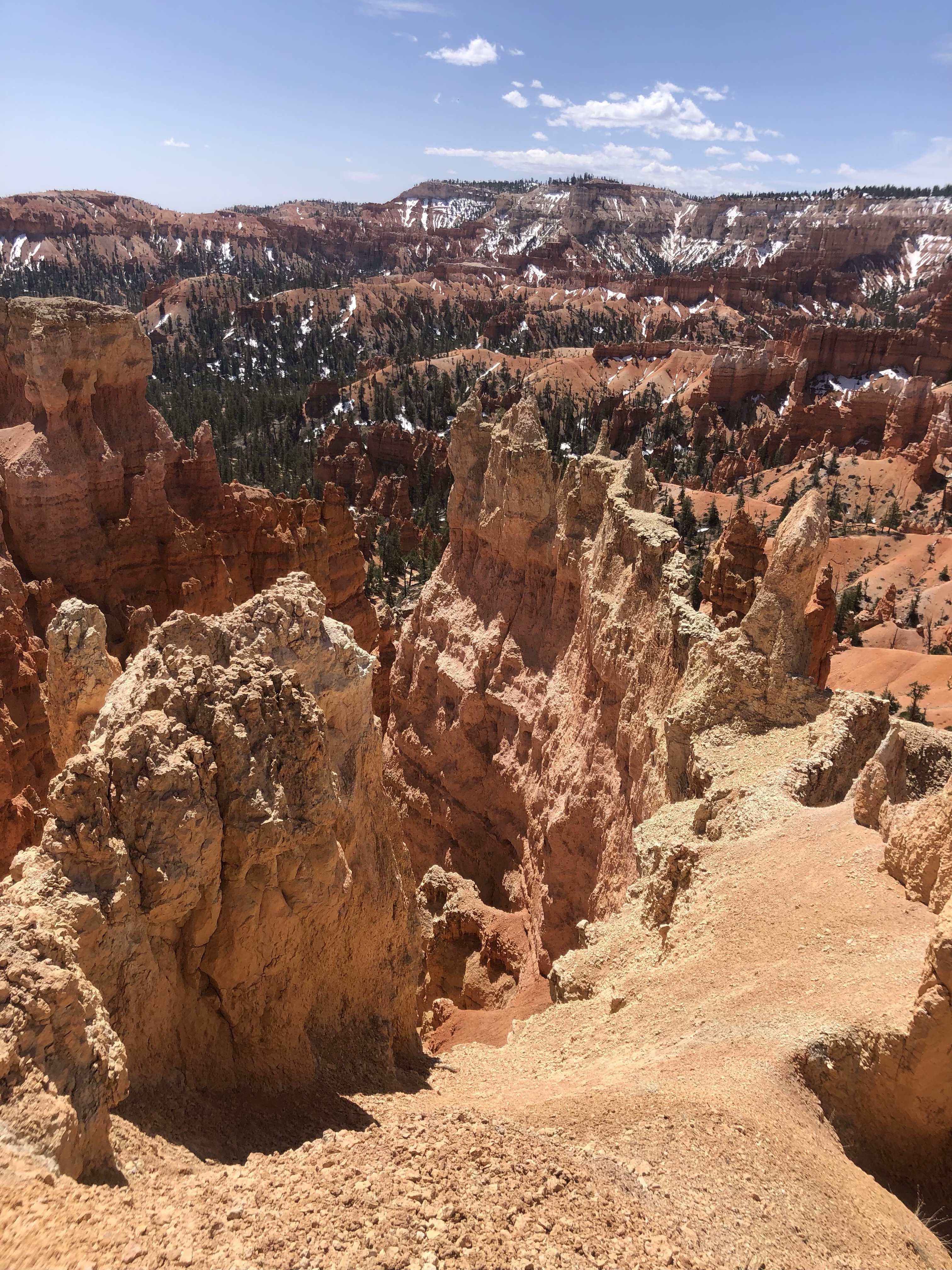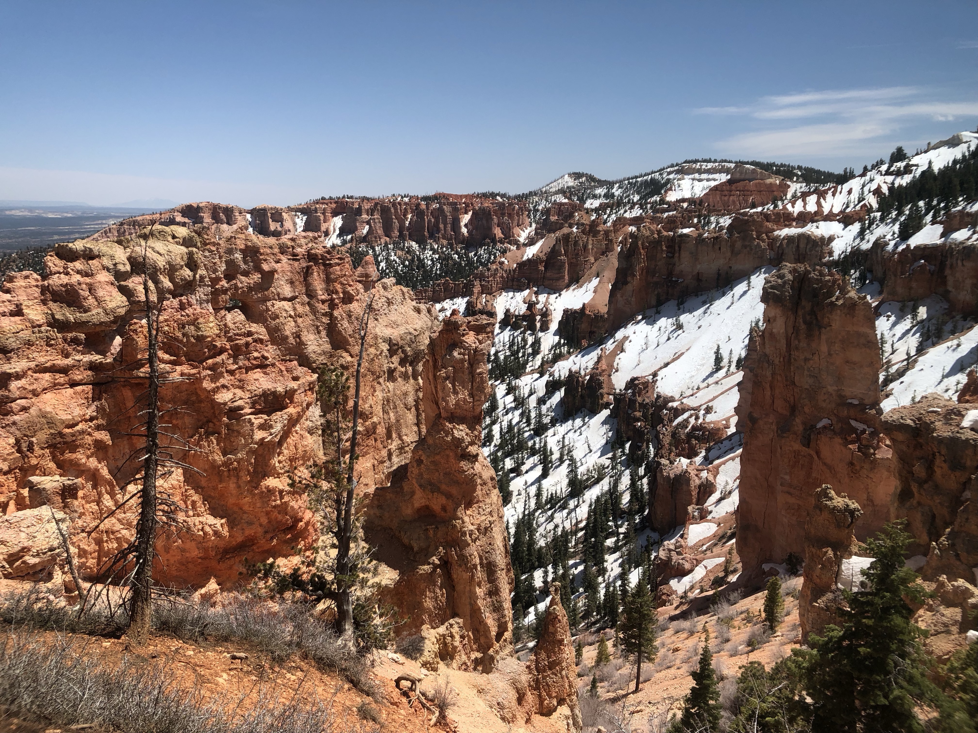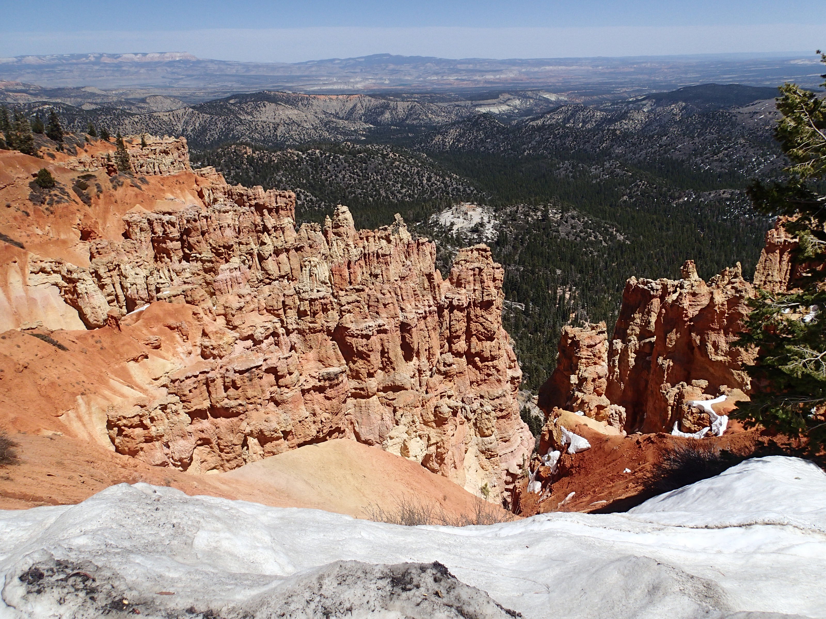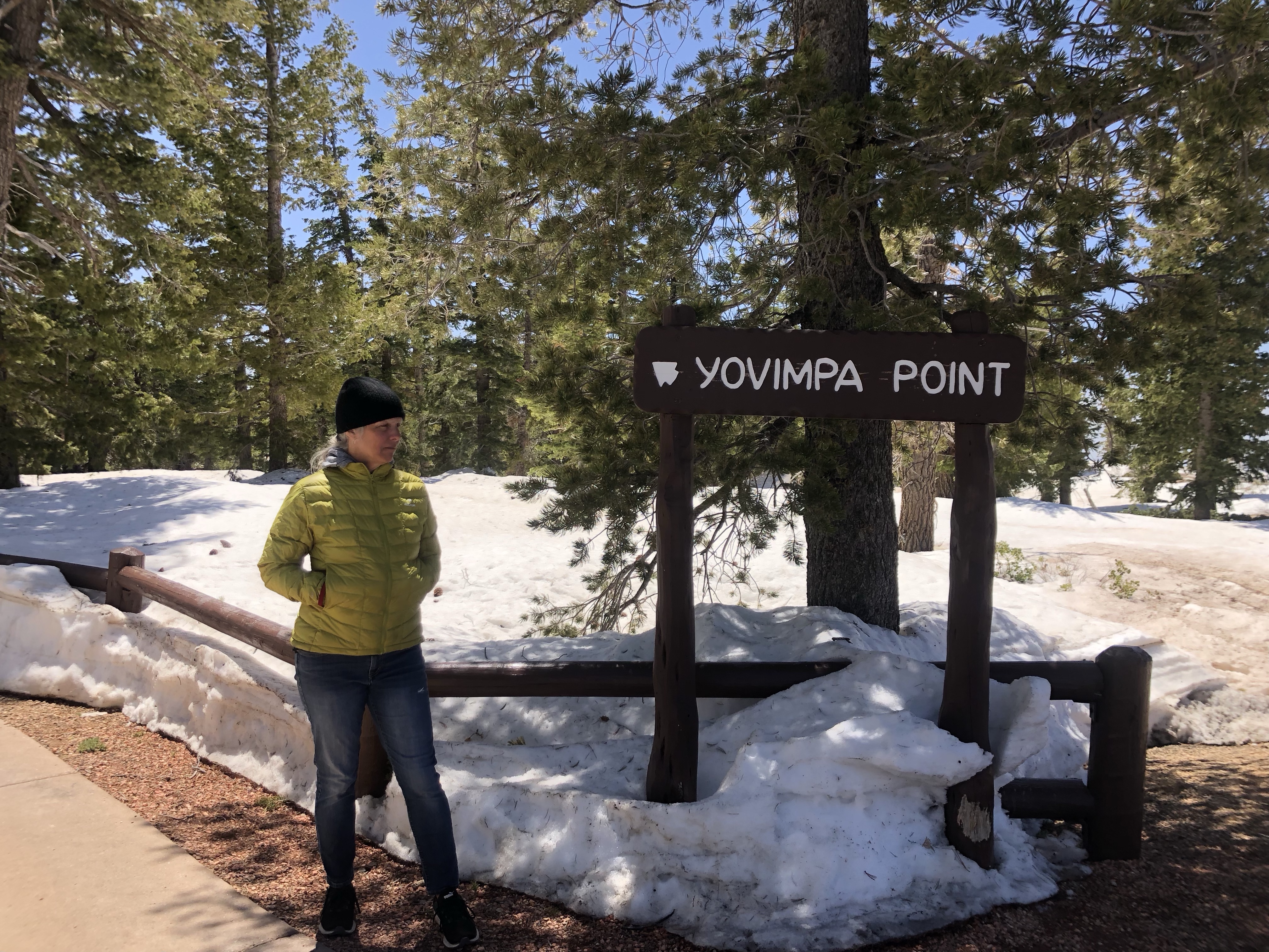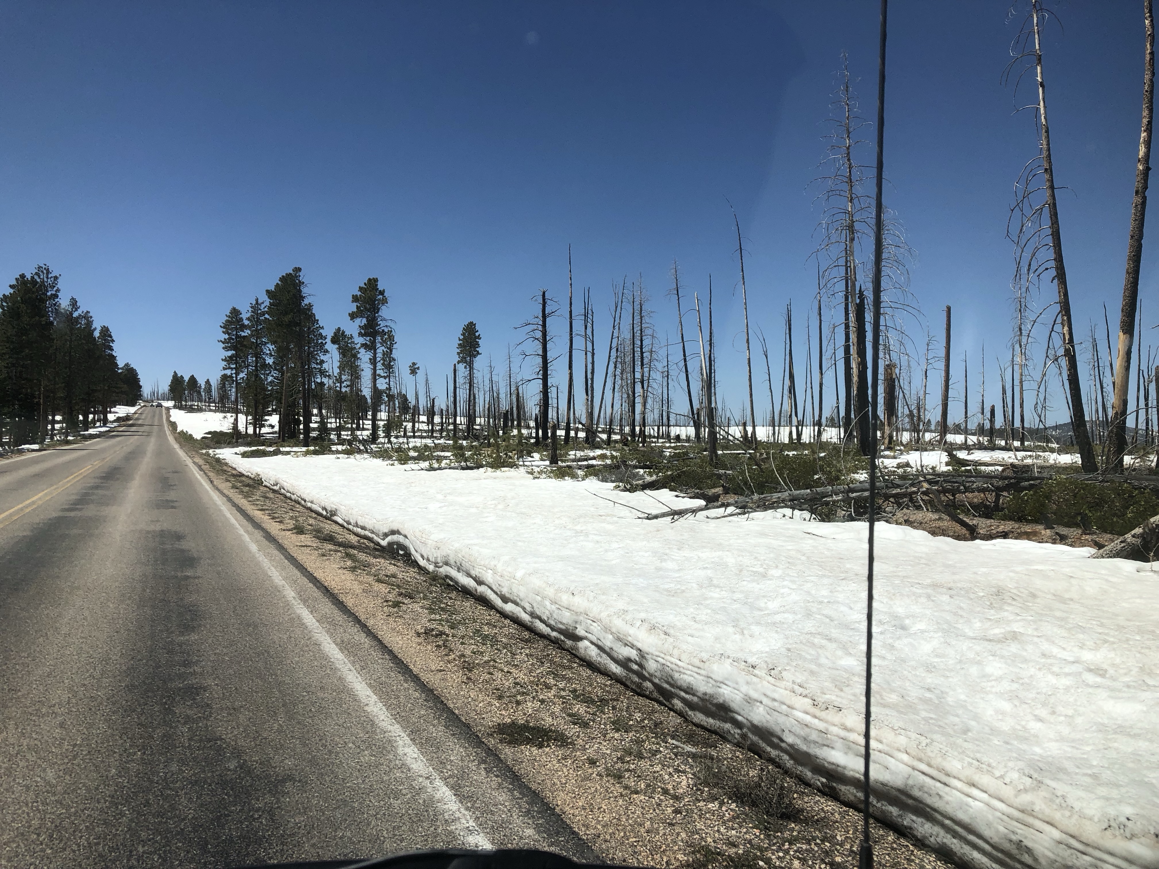 On passe a travers : Copper mountain paradis du skieur 9000-10000 pieds. Le « chairlift » est encore en marche (on est le 11 mai!). Puis Silverthorne encore un paradis de skieur. Hé puis hop, on retourne dans la neige encore et on recommence à monter. Ouf notre van en arrache un peu mais c’est que la pente est ardu et longue!!!! ~11 000 pieds. Puis on arrive au Tunnel Frisco, 1 mile de long. Et toujours en hauteur mais on commence un peu à redescendre. « Pouf » toujours paysage d’hiver! Tout un contraste avec Arches où on était hier à 25c en short. Au final on traverse une partie des Rocky Mountains.