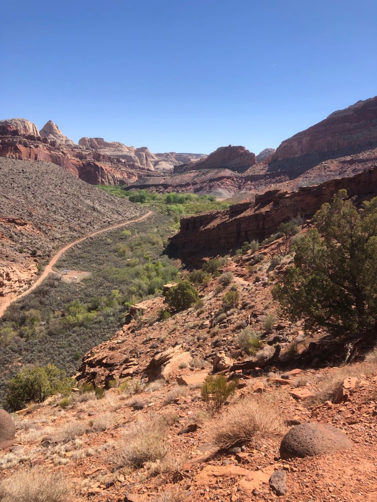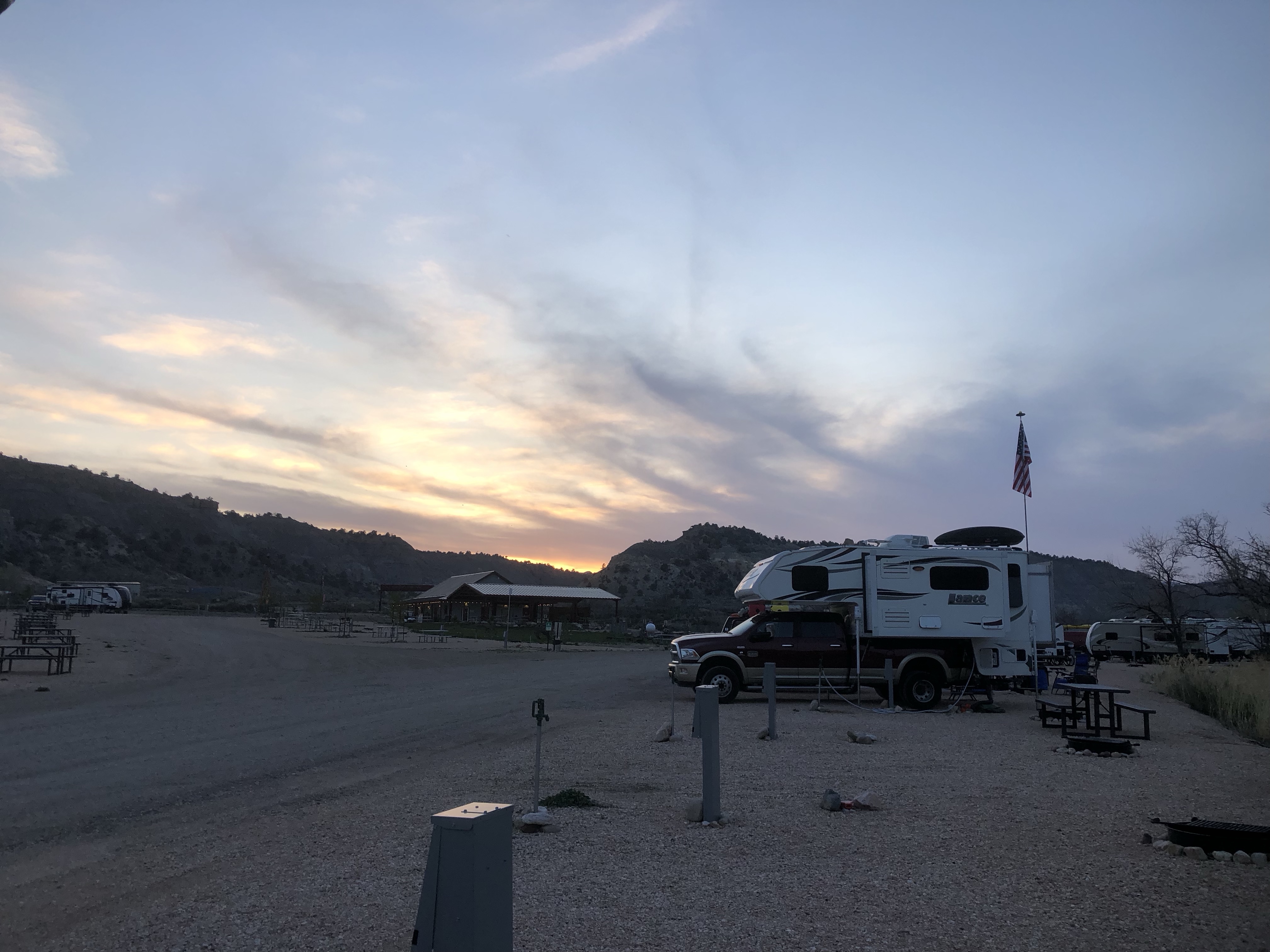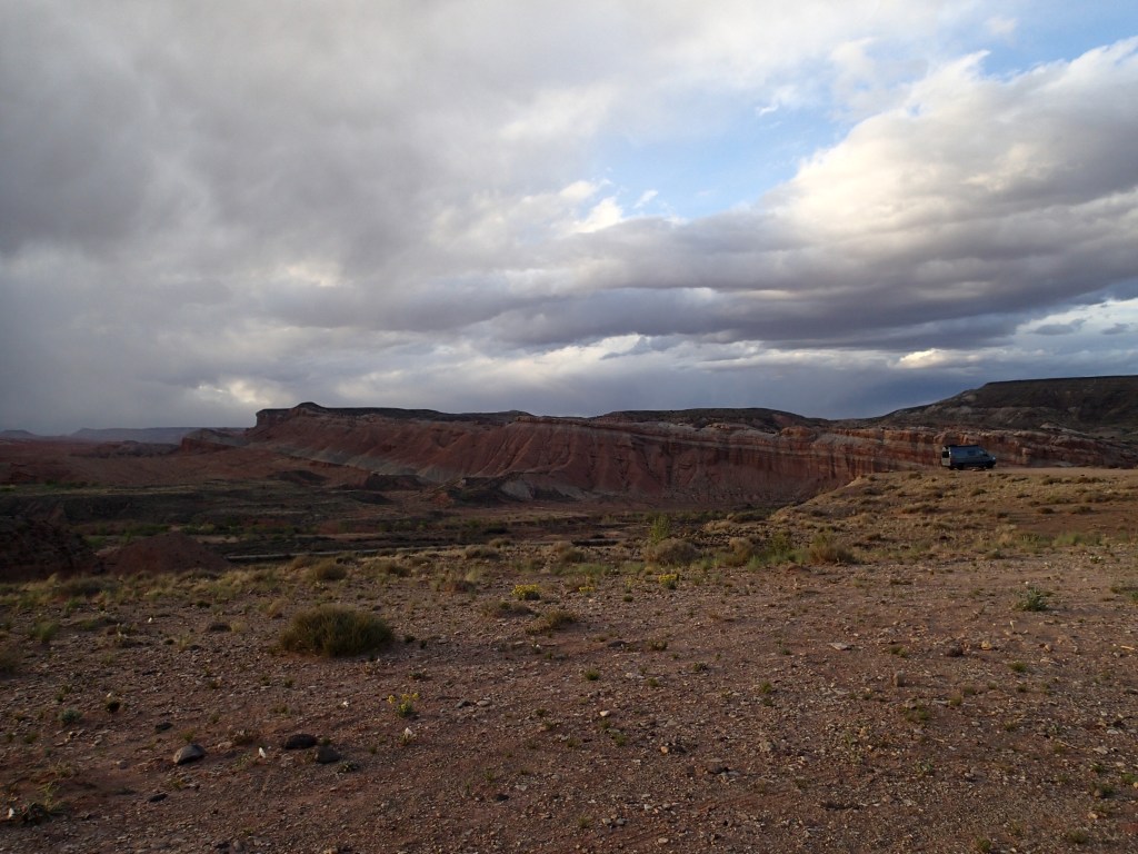 On essaie de trouver un BLM avec réseau cellulaire puis en arrivant à quelque pieds de là, ma sœur qui est à l’hôpital m’informe de l’état de santé de papa: anémie au plancher (mon père est cardiaque et ça peut être très dangereux) ….ho, on change les plans. On se dirigera à la place vers une aéroport internationale en cas que… C’est Denver, à plus de 5h de route d’ici. Pour le moment ils essaient de le stabiliser donc on en saura plus demain. 😟
