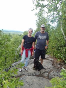 Un moment un jeune homme débarque de son camion ( Denis pense qu’on va se faire avertir). Et bien non, il « capote » sur le vr de Claude…c’est vrai que c’est tout un équipement son Safari Condo!). On fera petite jasette avec Collin et Michelle pendant que Scotch fait buddy avec leur petit chien. Il nous quitte car eux doivent aller rejoindre le ferry. (Ils arrivaient de Thunder Bay!!!!)